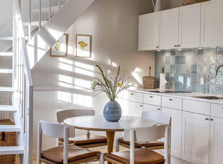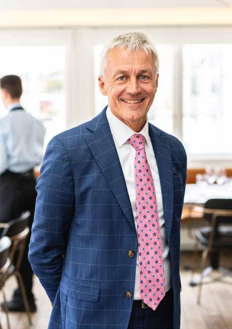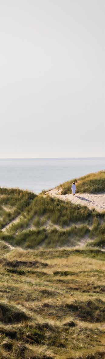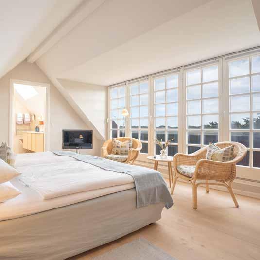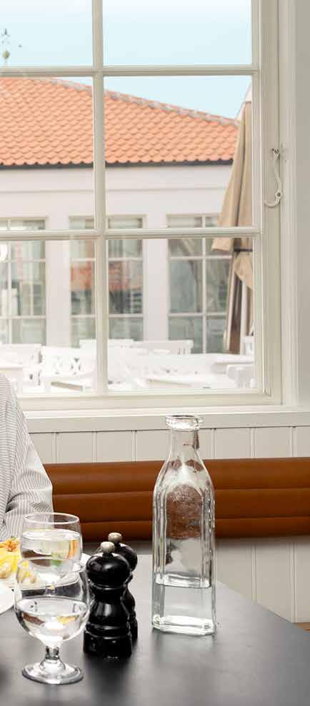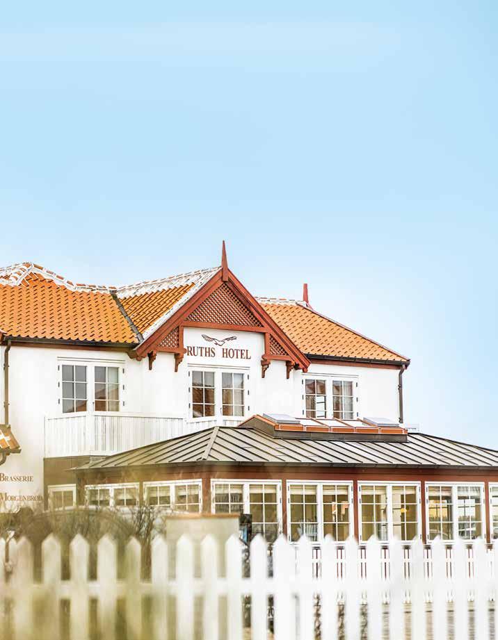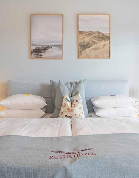 ferierne i Skagen skiller sig ud – man kan ikke altid regne med høj sol og varme året rundt i Skagen. Det gør dog ingen forskel for Sussie og Mogens: ”Uge 29 er noget helt særligt. Det er så åndssvagt, at det er sjovt. Det er et stort cirkus. Det er jo meget skægt, men det er også fint, at det kun er én uge om året. Skagen har sin charme ved alle fire årstider. Foråret er fantastisk, solen begynder at komme frem, og man glæder sig til sommersæsonen. Efteråret er rigtig smukt heroppe. December er også noget helt specielt for os. Der bliver pyntet op på terrassen og der er måske faldet lidt sne. Det er meget hyggeligt,” beretter Mogens, og Sussie tilføjer: ”Vi kan godt lide at være her på alle årstider. På visse tidspunkter af året, kan man gå en tur på 4-5 kilometer uden at møde nogen.” Det er således ikke kun om sommeren, at man kan finde Mogens og Sussie Zinck på Ruths Hotel. ■