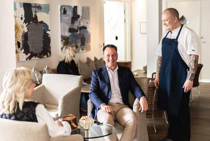 ”Hotellets omgivelser, naturen, maden og ikke mindst personalet skaber den perfekte ramme om et mindeværdigt ophold. Den nordjyske facon indhyller det hele, og når man bliver budt velkommen hjem, så føles det hjerteligt og helt naturligt. Et kram er en del af velkomsten og betyder alt. Man føler, at man bliver inviteret ind i familien Ruths,” reciterer Mogens fra sin telefon, hvor han har nedfældet følelsen af at komme på Ruths Hotel på skrift. En lille ode til hotellet, som er blevet ægteparret fra Vejles andet hjem. Tilknytningen til det nordjyske starterfor Mogens’ vedkommende langt op ad familietræet: ”Min far er oprindeligt fra Læsø og flyttede til Frederikshavn, hvor hans forældre havde til huse. Senere flytter han til Vejle, fandt min mor og fik tre børn, hvor jeg er den yngste. Det har gjort, at jeg er kommet i det nordjyske fra jeg var helt lille. Jeg havde onkler, tanter og bedsteforældre i Frederikshavn. Der fik jeg et skud af den nordjyske dialekt og charme fra barnsben. Min onkel og faster har været bosiddende i Gammel Skagen altid. Han var frisør heroppe hele livet og har klippet nærmest samtlige hoveder i Skagen. Derfor er jeg kommet heroppe hele livet. Skagen og Ruths Hotel går i blodet på én,” forklarer Mogens. På trods af den stærke tilknytning til Skagen, så gik der længe før ægteparret fandt ”hjem” til Ruths Hotel – de startede med at sidde på terrassen ovre på den anden side og kigge over på Ruths: ”I starten af 00’erne var vi ovre på Jeckels Hotel – der sad vi på terrassen og kiggede over på Ruths Hotel, som dengang var noget gammelt bras. Der var fyldt med håndværkere, som var i gang med at renovere. Vi tænkte, at der skulle vi over engang, når det var færdigt. Det gjorde vi, og så har vi hængt ved lige siden,” griner Mogens.