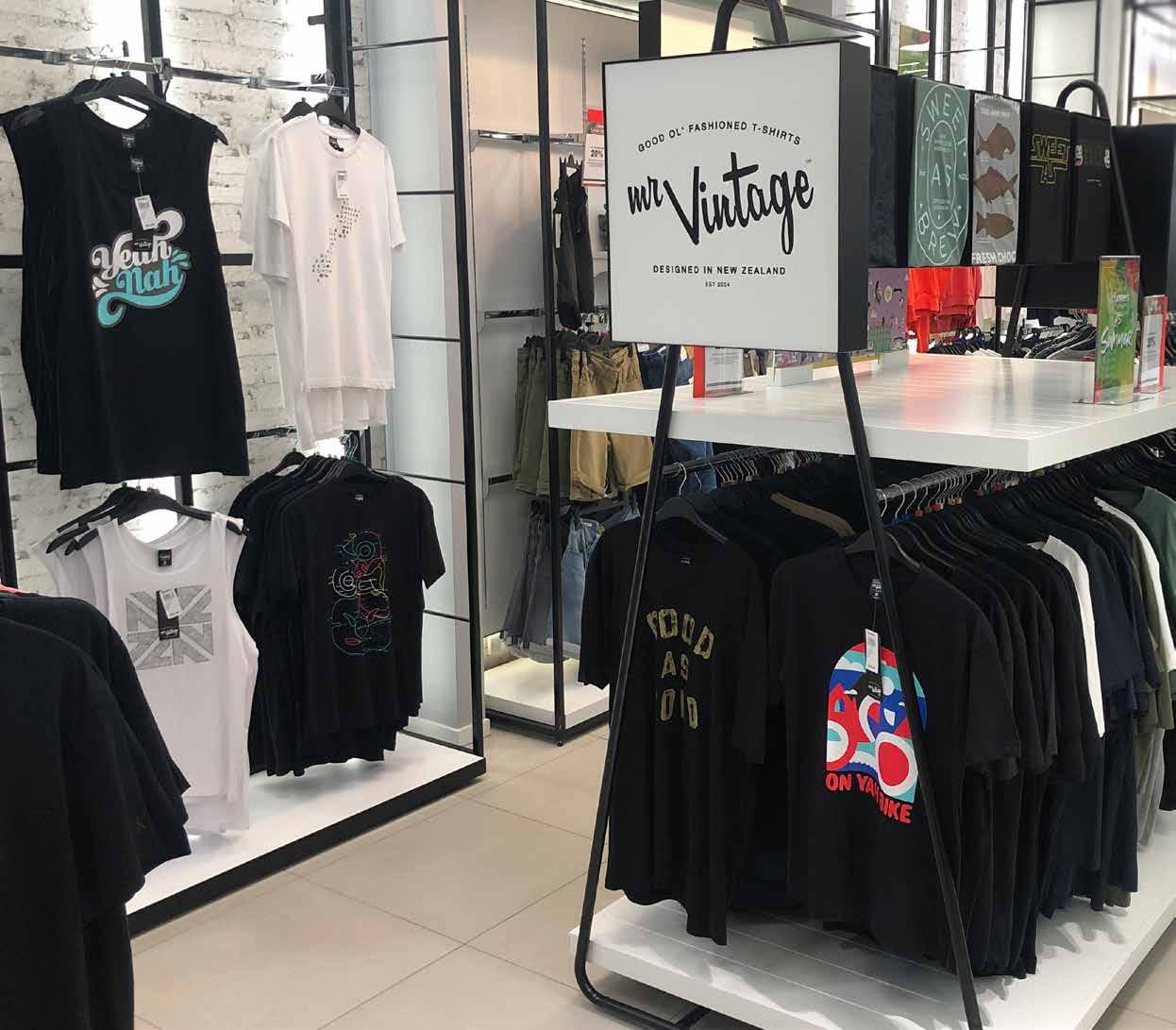 Since 2004 Mr Vintage has worked with many of NZ’s most iconic brands, artists, charities, corporates and personalities, commenting on NZ culture using t-shirts as the canvas.