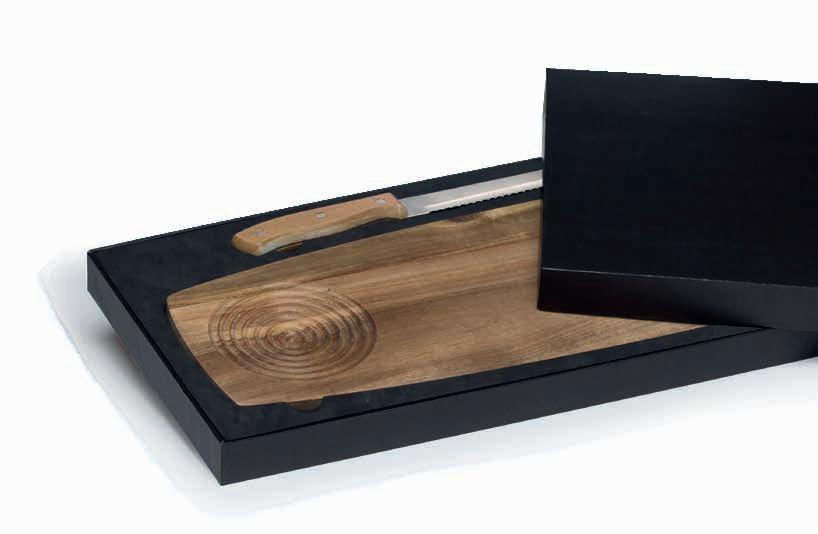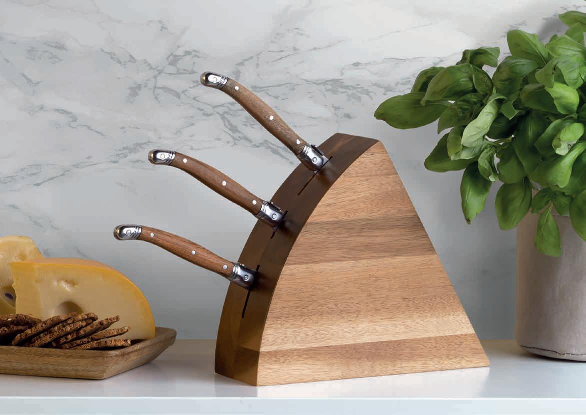 Each board and knife handle displays its own character through its unique wood grain and subtle patina finish