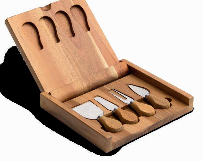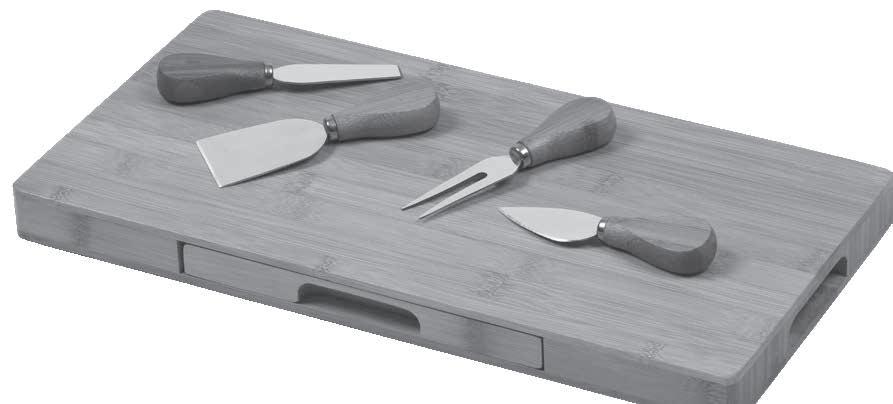 Dimensions: Board: 30cm W x 1.5cm H x 20cm D, Bowls: 4cm H x 9.2cm Dia., Spoons: 10cm L, Cheese knife: 20cm L, Spreader knife: 18.5cm L