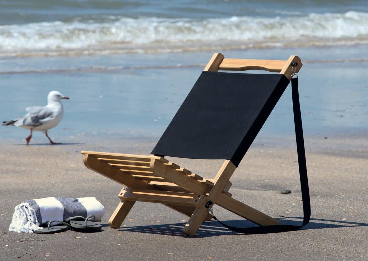 2-pcs foldable/packable - Bamboo (FSC certified) alfresco beach chair with black cotton canvas backrest