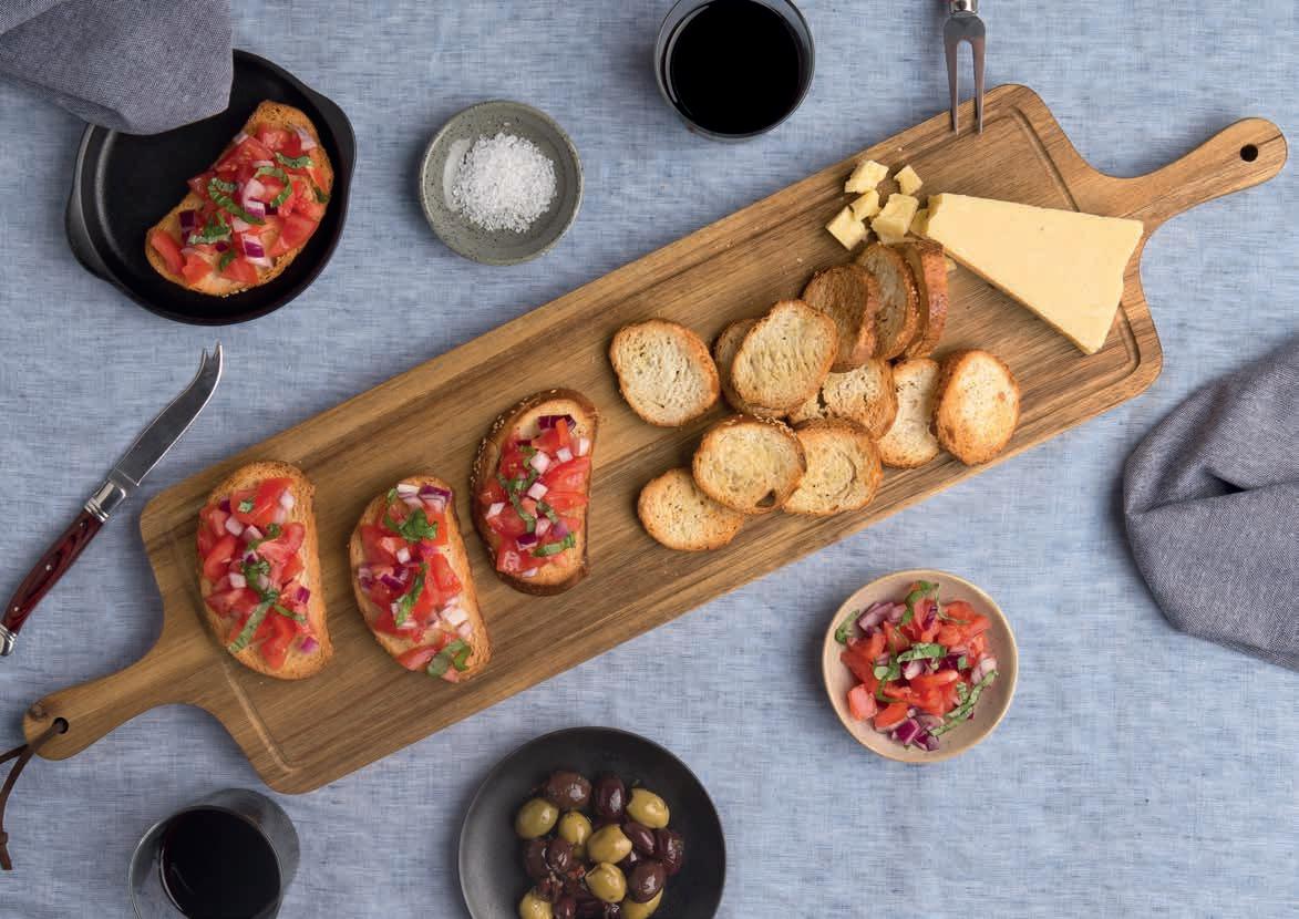 Large surface area with integrated circular well perfect for olives and dipping oils.