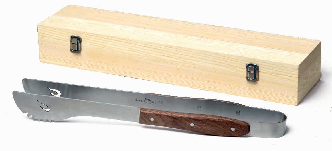 Engraved Roadhouse logo on tongs and base of presentation box