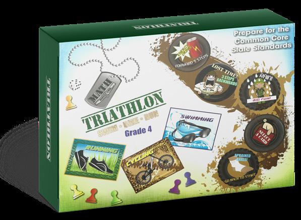 Our Triathlon game board helps students master concepts and increase testing aptitude through fun and memorable game play. The board game quizzes students as they compete against each other in a simulated race with obstacles that make the game fun, yet challenging. Aligned to the state standards for mathematics, Triathlon works well in center rotations, before school, after school, and Saturday school programs.