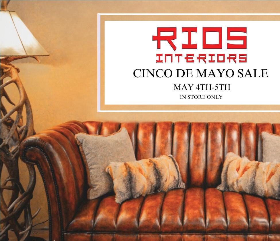 May 4 & 5 Rios Interiors: Huge Cinco de Mayo Sale! One of the chicest interior decoration stores in Fort Worth is having their massive, annual sale in honor of Cinco de Mayo weekend. In-store only, don’t miss the authentic Western pieces and beautiful artistry, all for 20%-80% off. The shoppers who mean serious business can enjoy an early bird special of an additional 10% off from 9-11 a.m. on Saturday, May 4. Both days will feature lunch and entertainment in the store. May 4: 9 a.m.-6 p.m. May 5: 12-5 p.m. 2465 N. Main St. 817626-8600, riosinteriors.com.