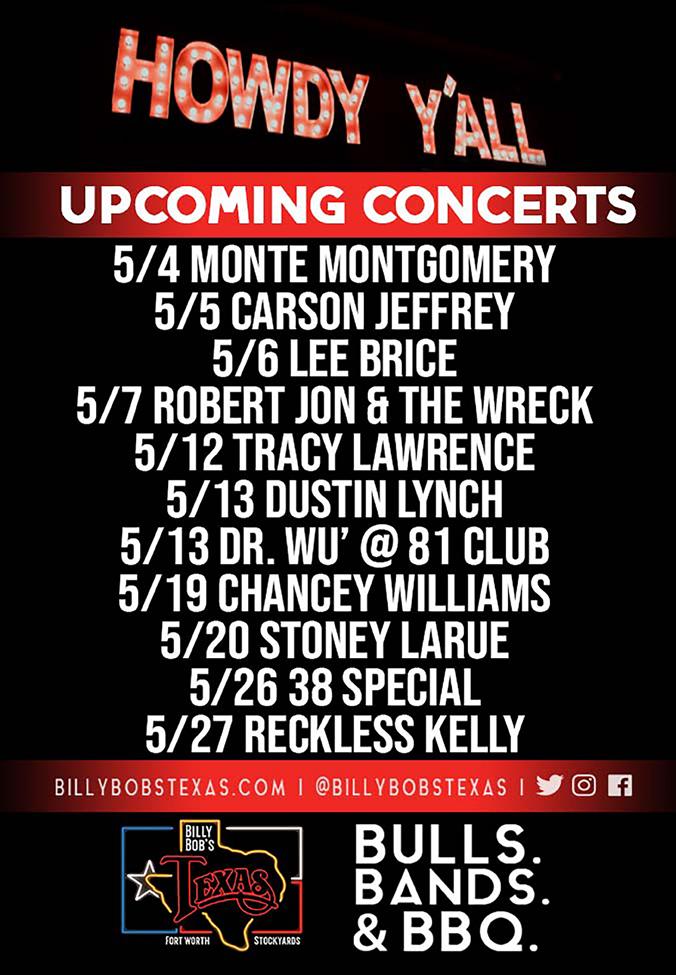 2520 Rodeo Plaza. 817-624-7117, www. billybobstexas.com/events.