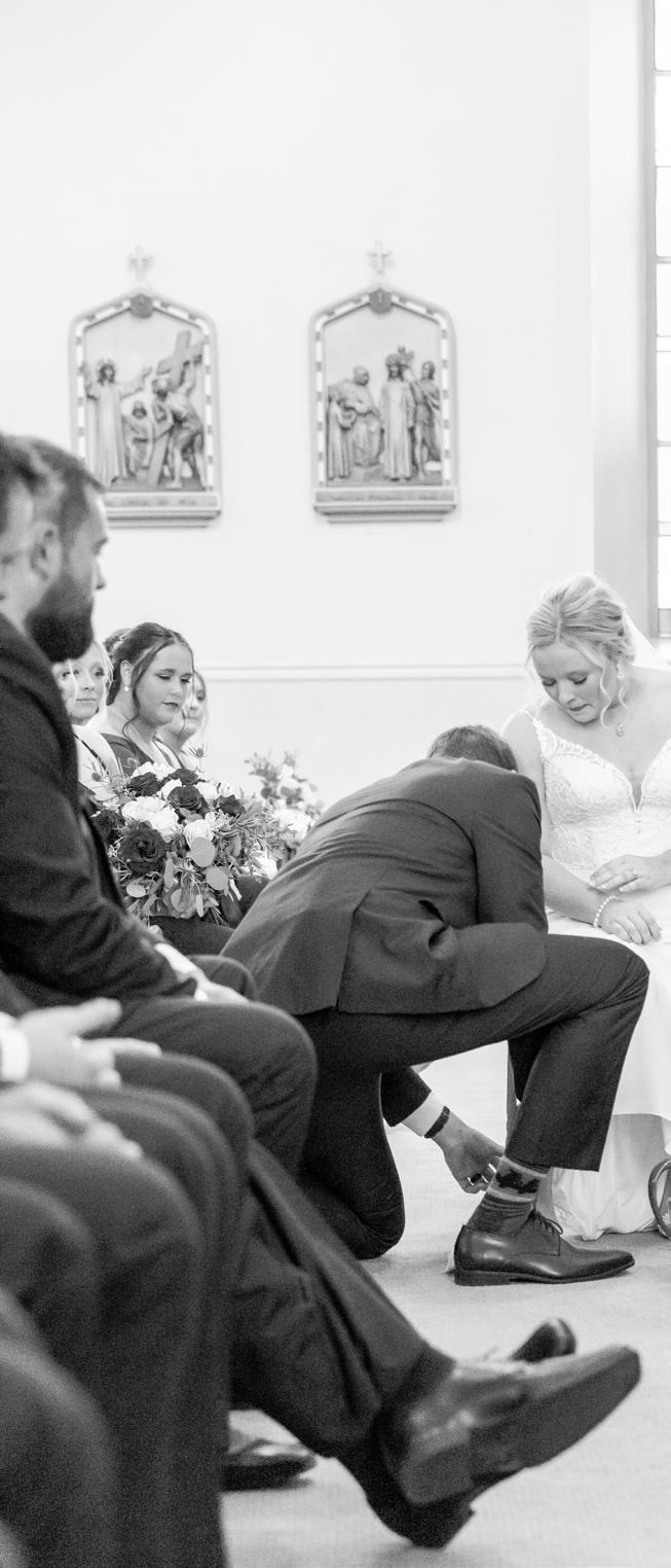 Sam was born and raised in the Catholic faith, and I knew I wanted our future kids to be raised the same way. I completed the RCIA program and was confirmed and baptized at Holy Family Catholic Church. It only made sense to share our Rite of Marriage at the place where we both began our faith.