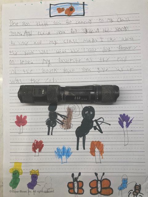 Regarding giving books to the classes he visits, Ron shared, “There’s nothing cooler than to hand a child a book, and I get to see their smile, but financially, I can’t give them away. There are very generous people in this community who have supported me by sponsoring classrooms with book sales.”
