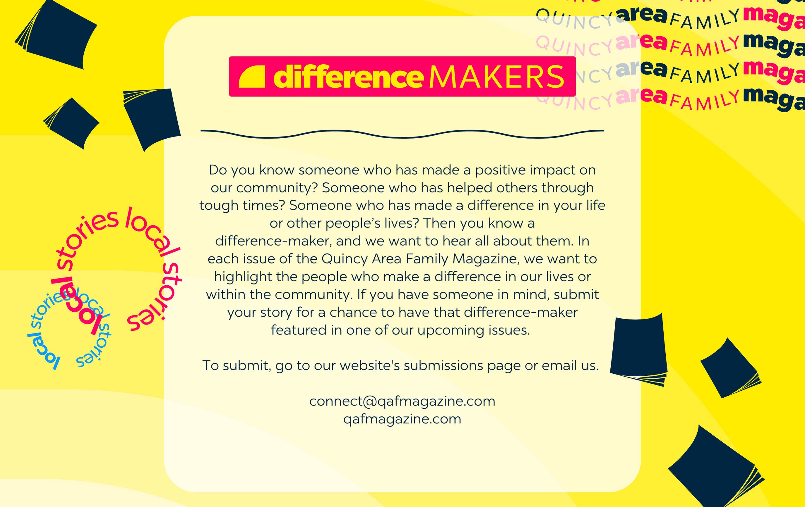 I’m excited about our difference-maker section. So many people, just in the Tri-States area, make a big difference within our communities or even make a difference for one person struggling in life. The Difference Maker section highlights these fantastic people and explains why someone considered them a difference maker.