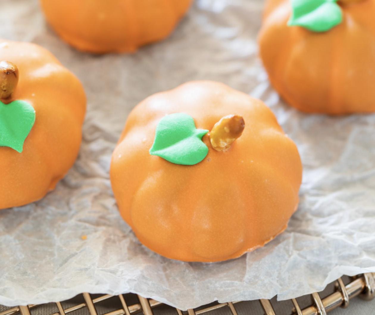 4. Use a toothpick to score lines into the Oreo balls to resemble pumpkins. Place back into the refrigerator for 10 minutes.