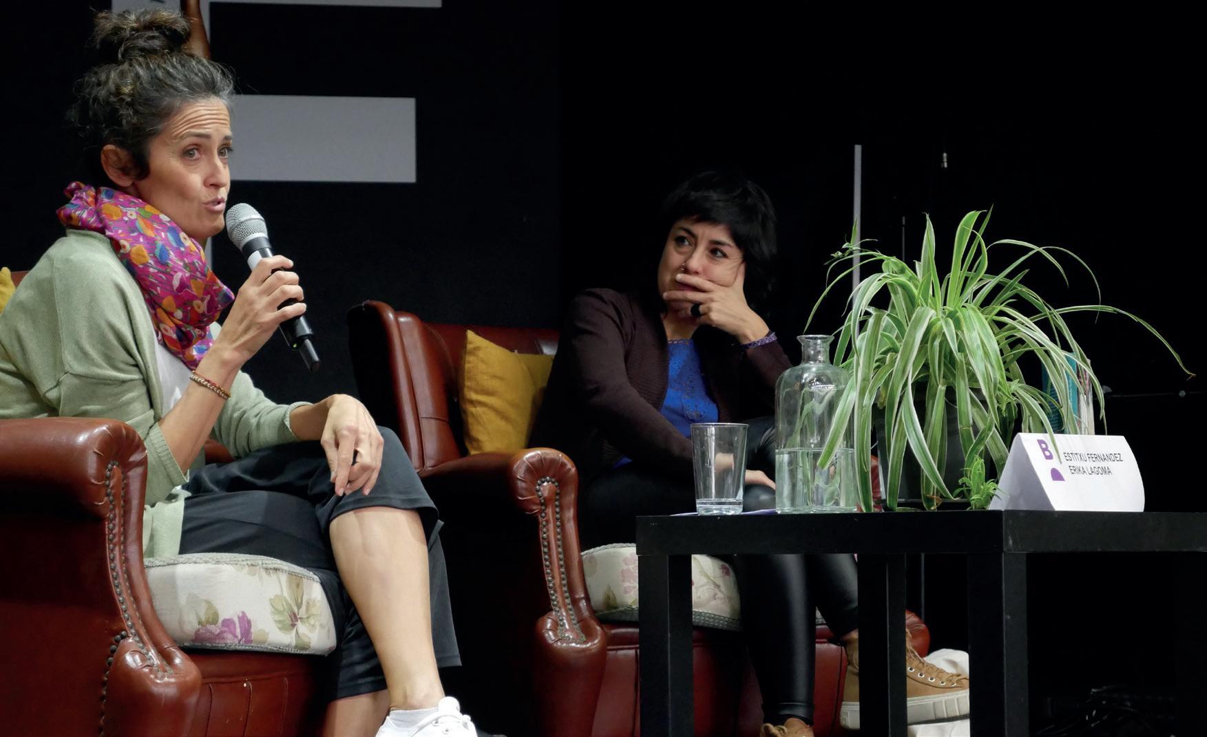 ‘Amatasun ereduak ezbaian’ solasaldia eskaini zuten Estitxu Fernendezek eta Erika Lagomak urriaren 22an Aiaraldea Ekintzen Faktorian. ‘M ama*, eme*, ume’* liburua plazaratu berri dute, amatasun eredu anitzak erdigunera ekarri eta korapilo, bizipen zein gogoetak askatzeko.