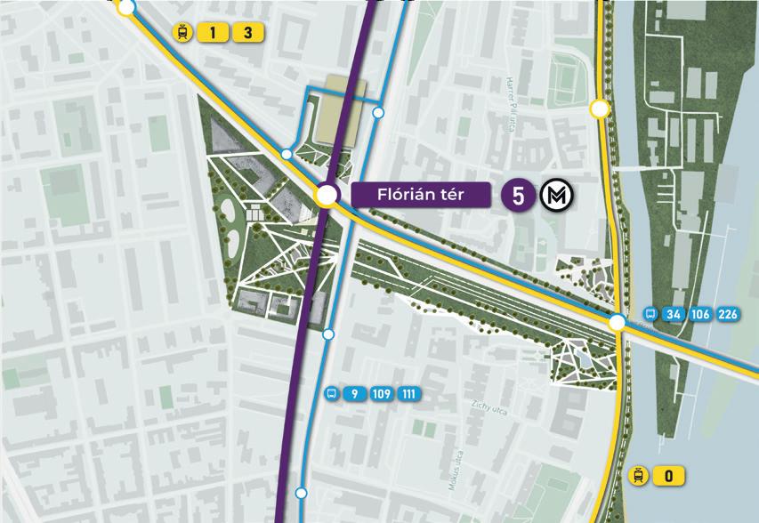 Duna-part sétány + mikromobilitási sztráda Flórián-tér közpark + beépítés Flórián Shopmark metró, autóbusz állomás Óbudai sziget revitalizáció + Hajógyári híd Serfőző utcai zöldfolyosó és sétány Római-birodalom örökségvédelem Mikromobilitási hálózat lokális pontok kontextusa - hálózata