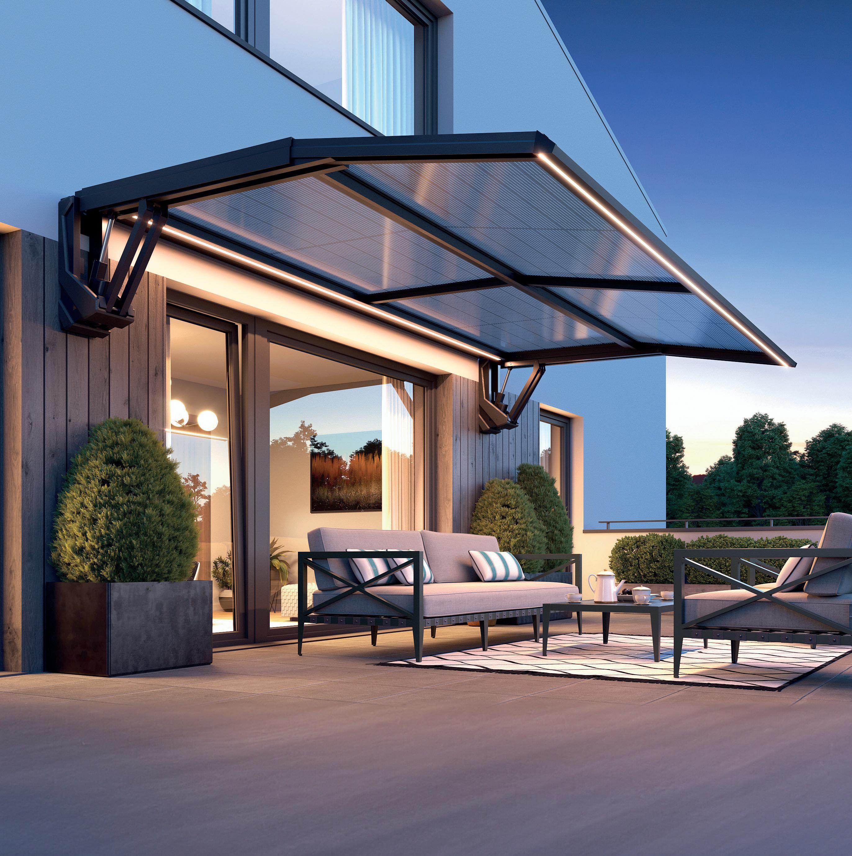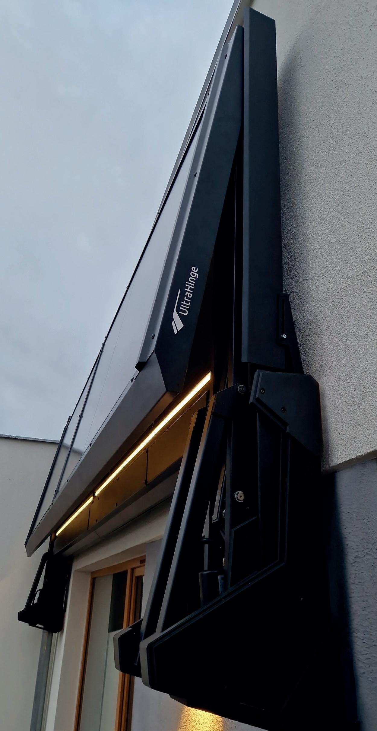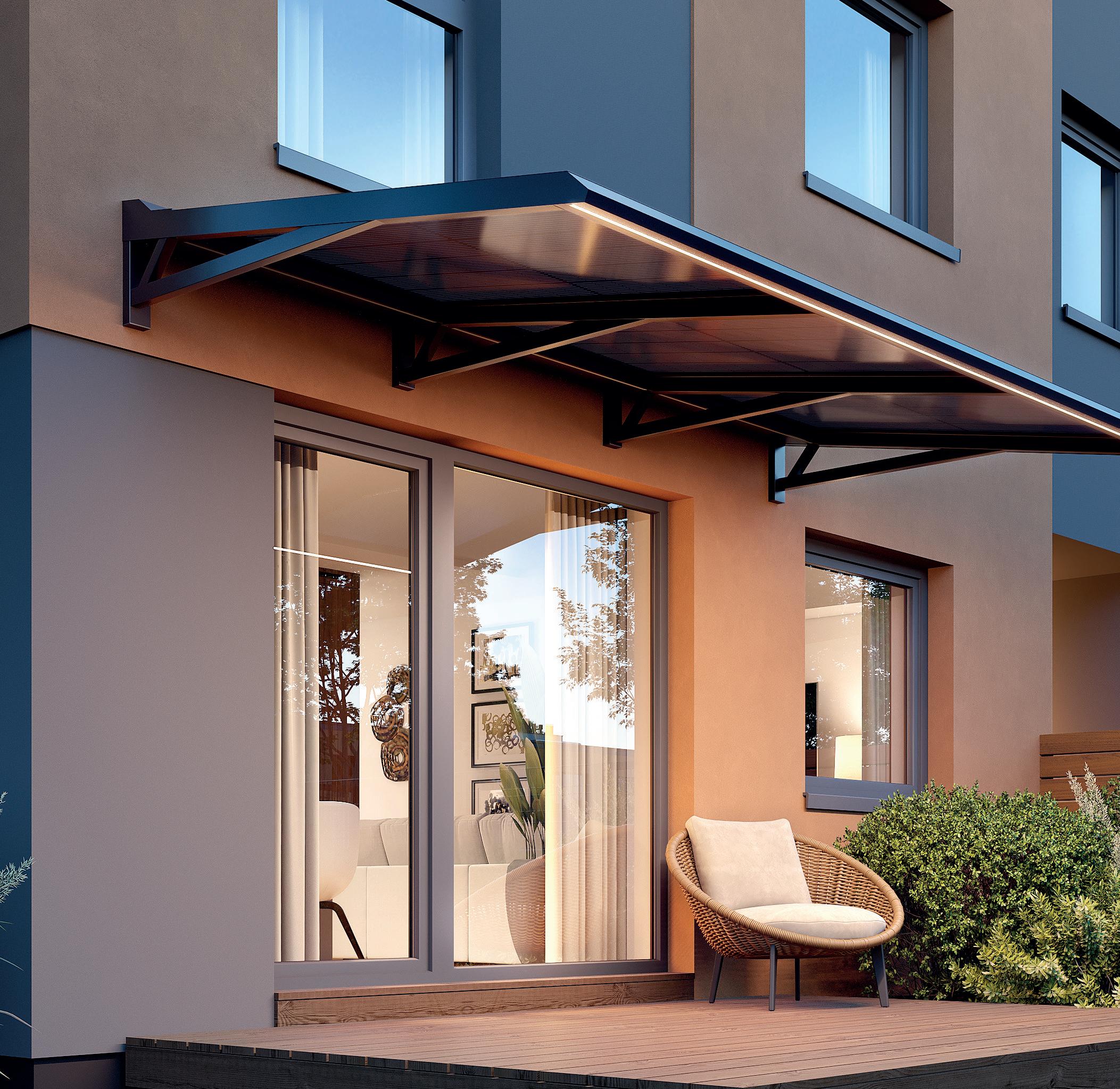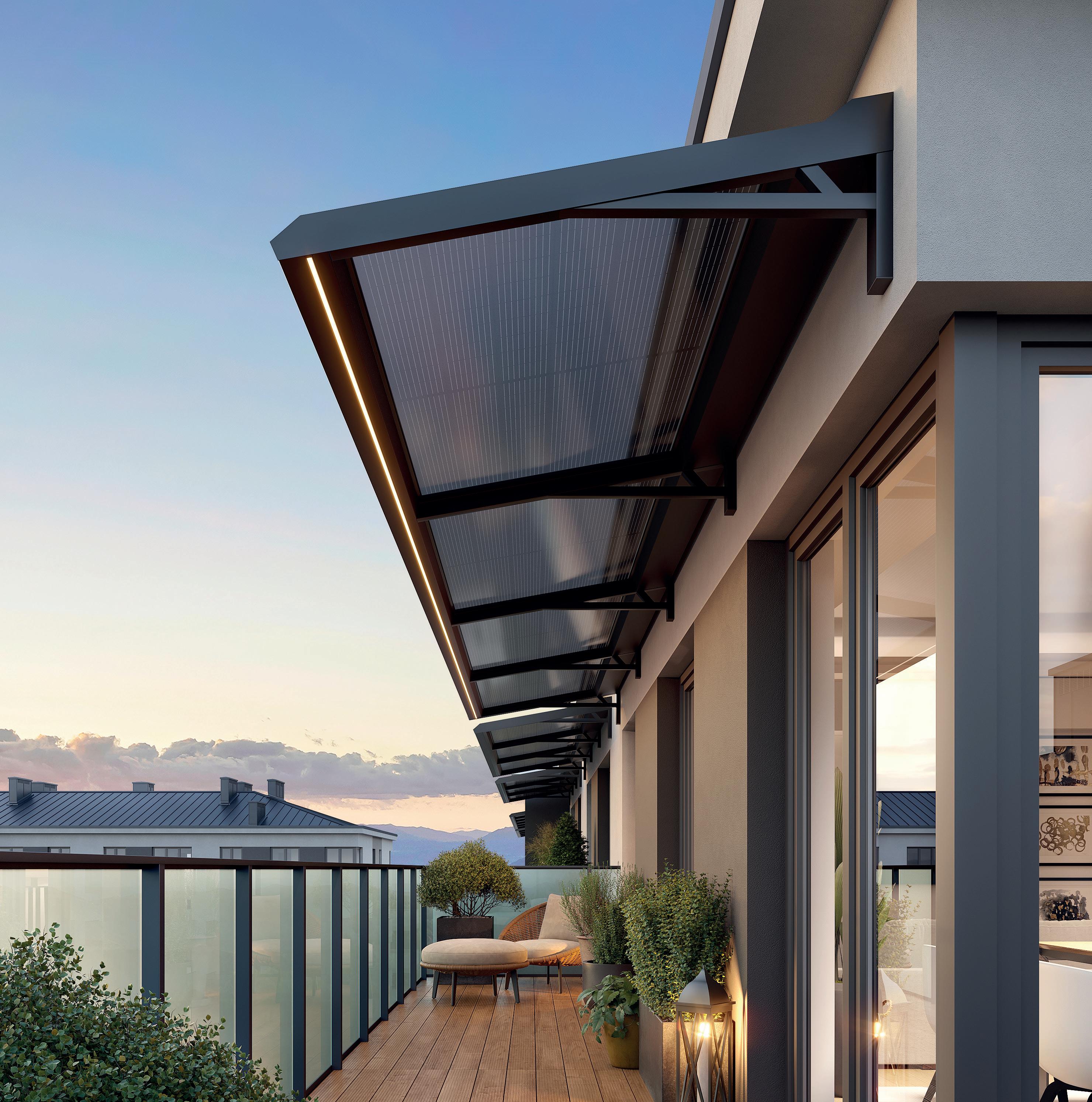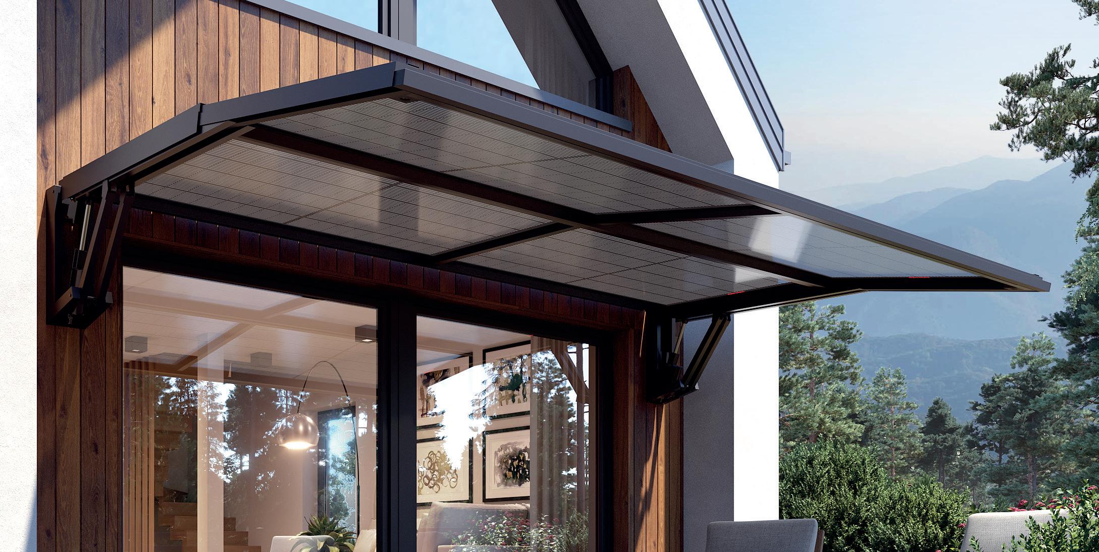 An elegant, architecturally refined canopy that blends seamlessly into modern designs. Its versatility makes it an ideal solution for terraces, balconies, and entrances.