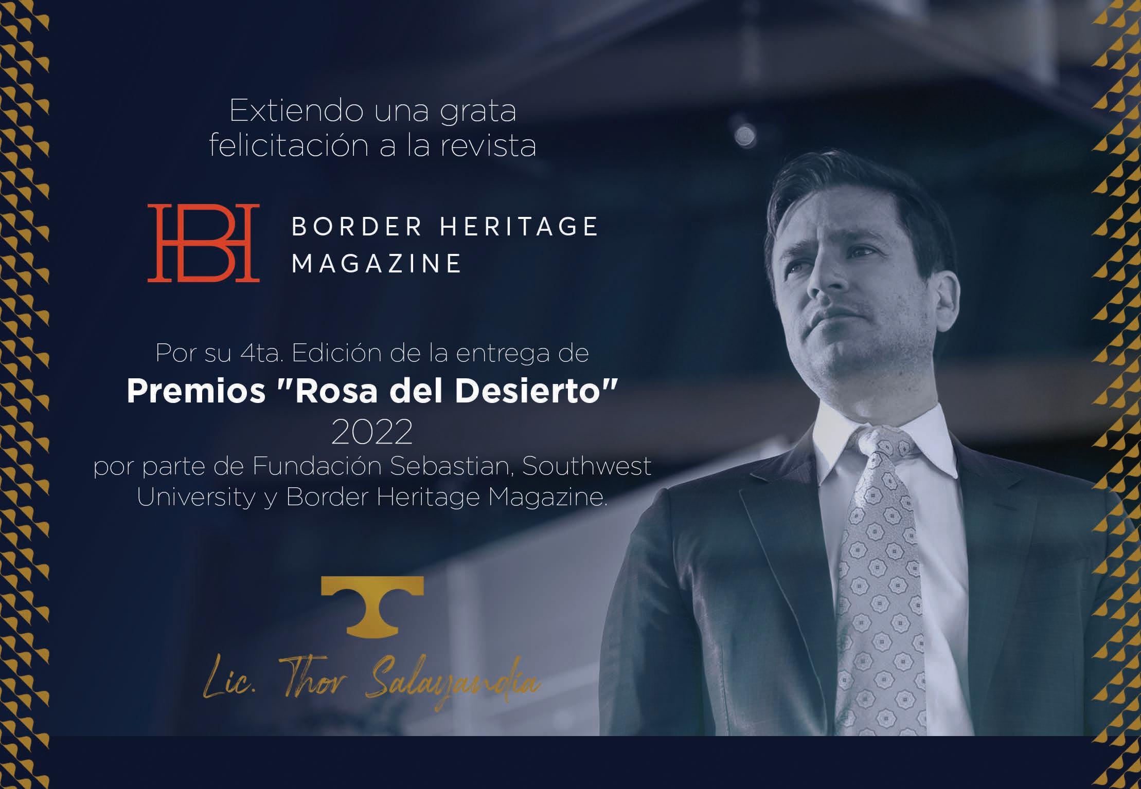 En su cuarta edición, Fundación Sebastián, Southwest University y Border Heritage Magazine, se unen para honrar la trayectoria de ciudadanos con extraordina ria labor para aportar bienestar a la comuni dad de Juárez y El Paso.