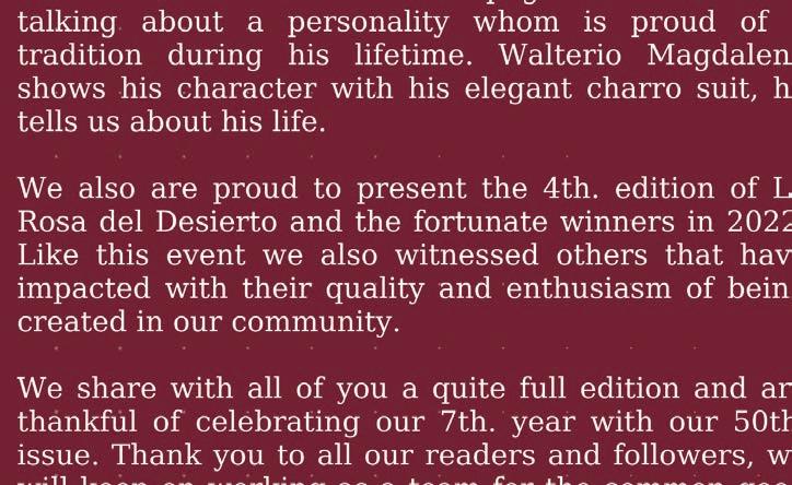 For their contribution in the arts, healthcare and business, three distingui shed personalities in the borderland deser ved “ La Rosa del Desierto” Award.