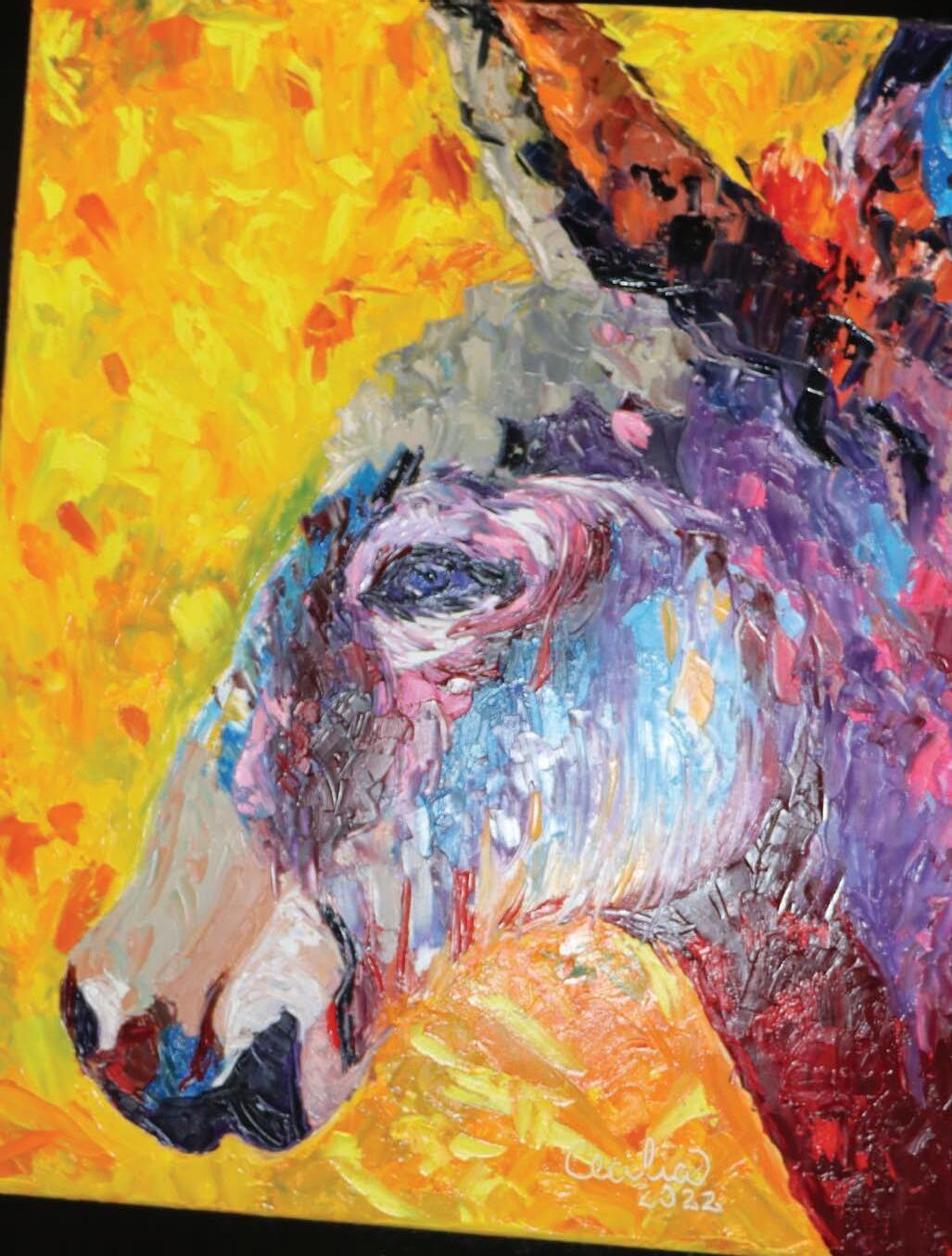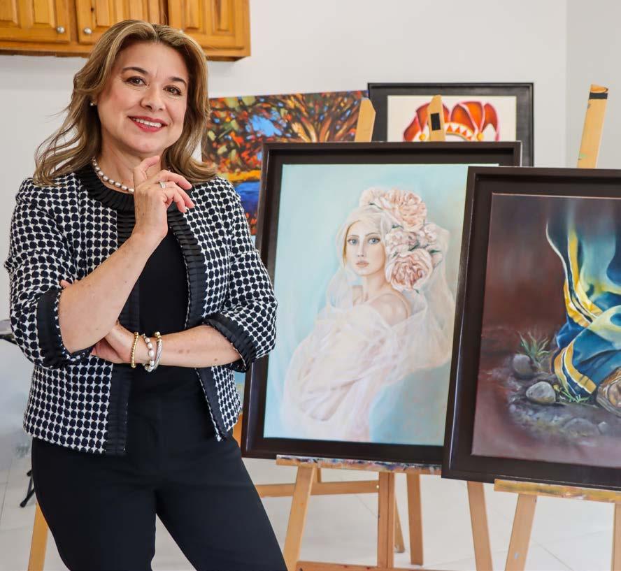 "Descubrí que el pintar era una forma de relajación interna y de cierta manera una expresión personal de mis pensamientos. Las mujeres tenemos retos diferentes y muchas veces es difícil de explicar, cuando me encuentro frente al lienzo, mis retos se hacen más llevaderos, mi mundo cambia."