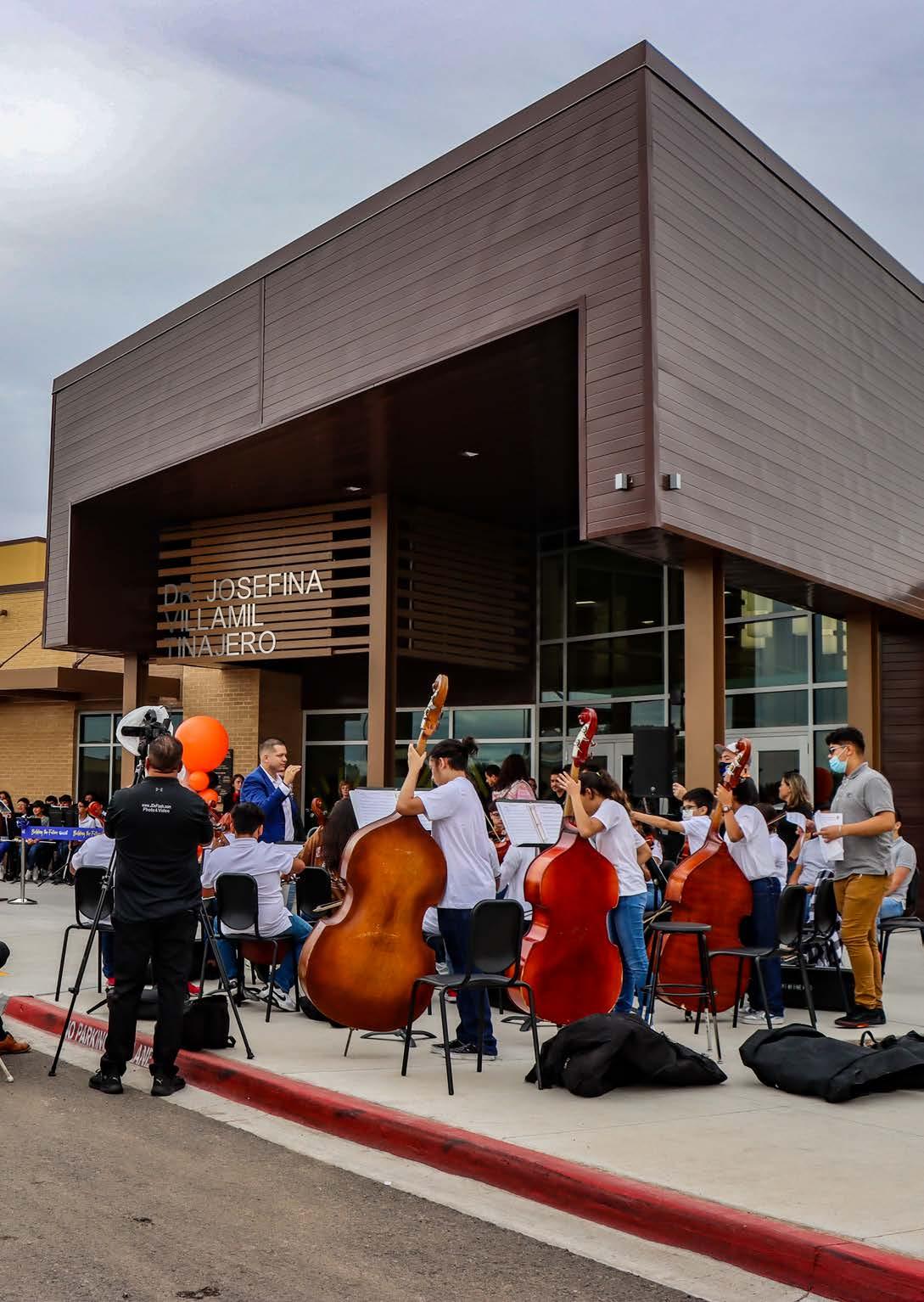 The inaugural ceremony of the new campus, the Dr. Josefina Villamil Tinajero, PK-8th Grade School, brought together the communities of Clardy Primary School and Henderson Middle School. Tinajero stated that day, “It’s quite nostalgic and touching being present at this inaugural event where I know that many children will learn and will form memories that they will never forget, just like I did.”