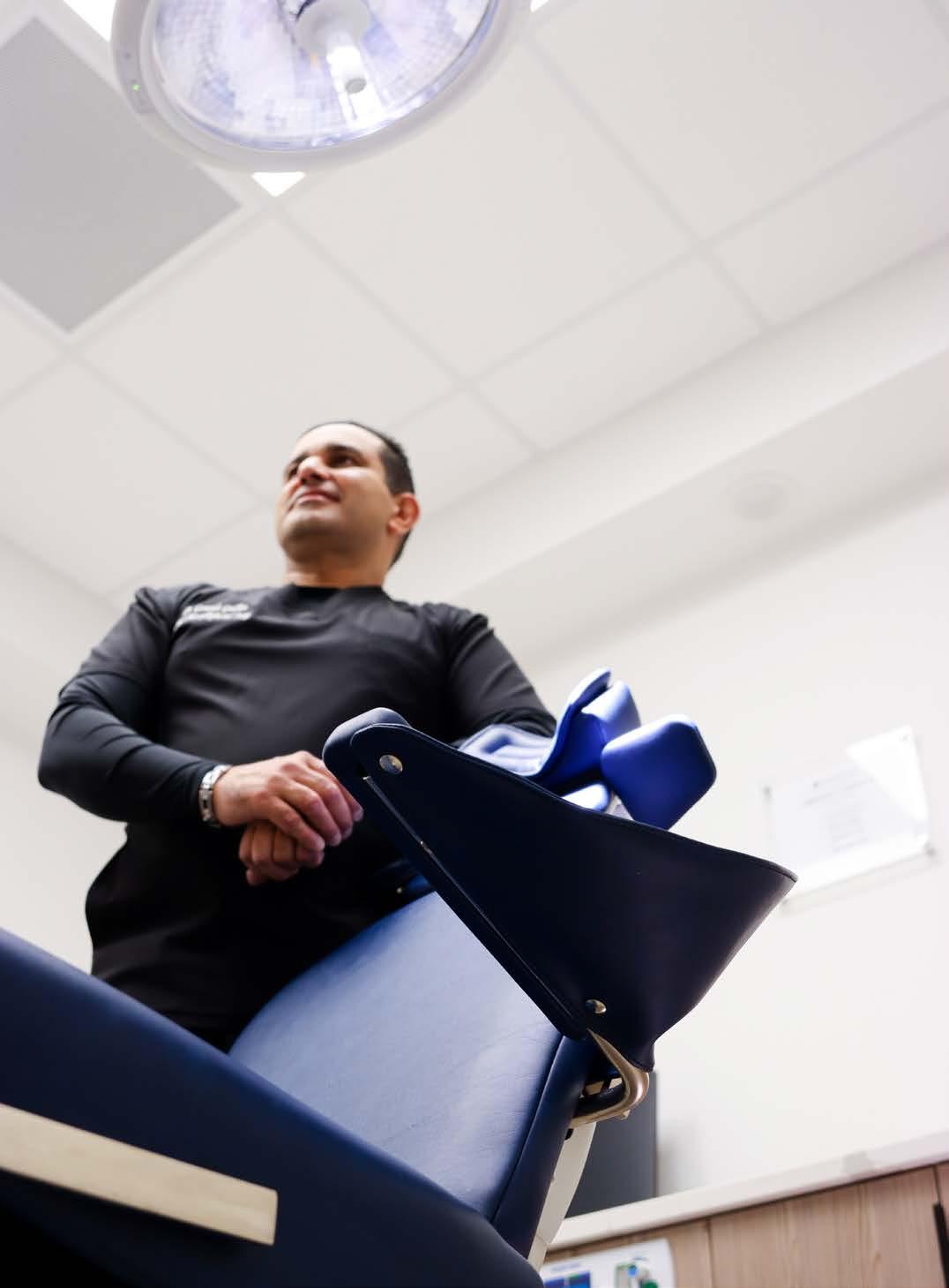 “La cirugía oral maxilofacial tiene la particularidad de que es una formación muy médica, pero conservando muchas bases desde el punto de vista odontológico, por ejemplo, la punción a la hora de tratar un paciente facial, cosmético. Aquí no hay un quirófano como en los hospitales, pero se realizan muchas terapias de tipo clínico que van desde la frente hasta el cuello”, explica.