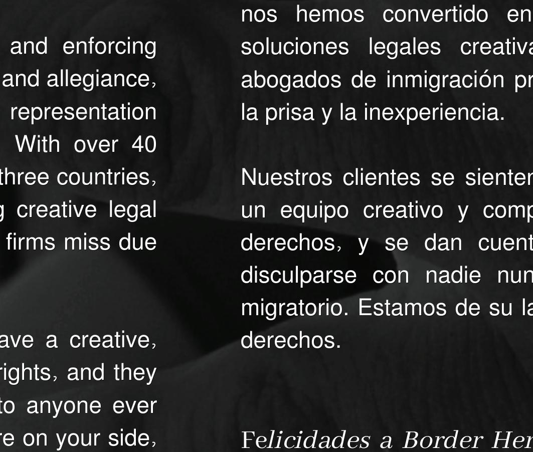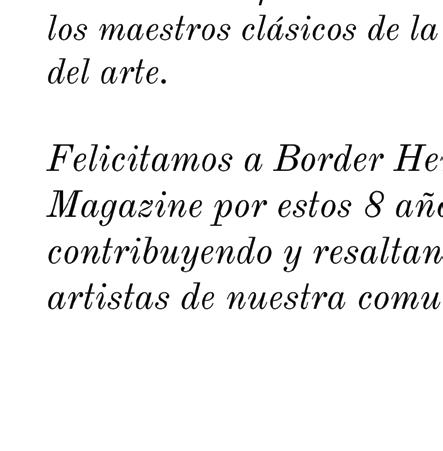 Hace ocho años, con ansiedad y emoción, preparados para abrir una nueva ventana al mundo, nació Border Heritage Magazine. Hoy en día, continuamos listos para proponer diferentes puntos de vista, con ganas de llenar los días de noticias, de historias, de emociones, de sonrisas, de opiniones, de novedades, unidos para darle a los lectores una nueva alternativa que transmita, y que trascienda nuestro sentir.