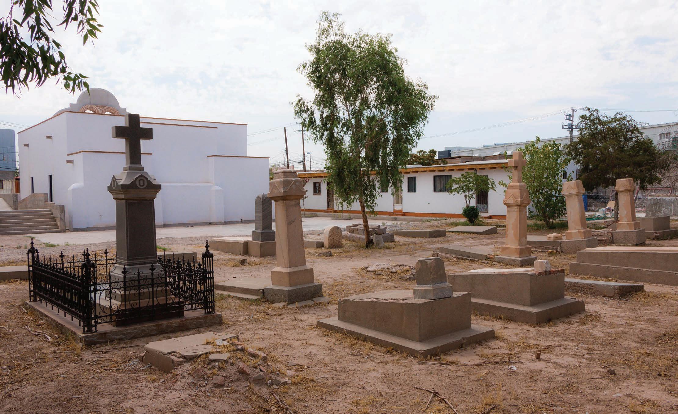 En el panteón ubicado a espaldas de la capilla, están sepultados los restos de personajes ilustres que forjaron la sociedad en el siglo XIX, de Paso del Norte a Ciudad Juárez
