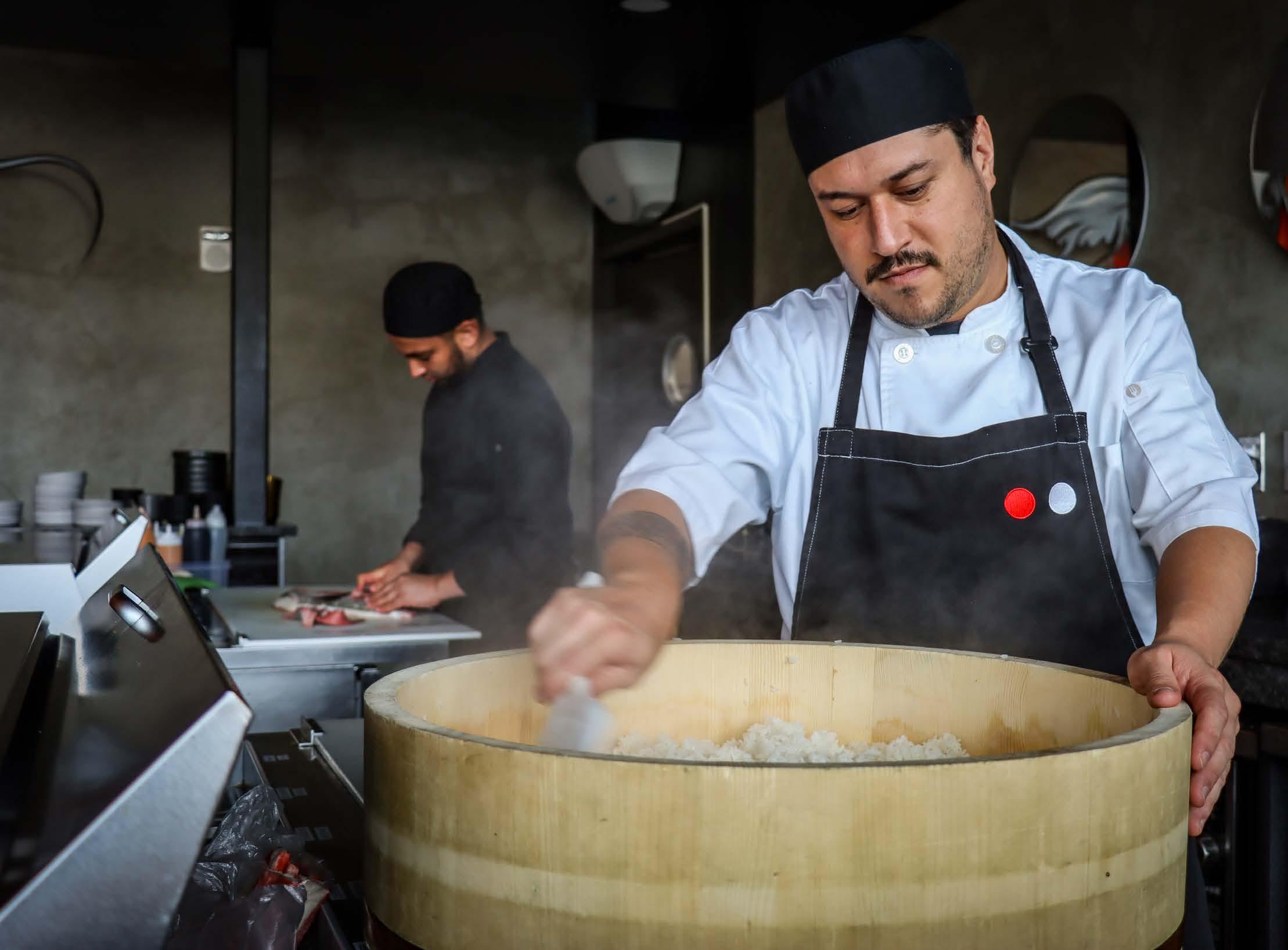 La meticulosa presentación siempre destaca ingredientes frescos y de temporada. En el corazón de la cocina japonesa se encuentra el arroz, complementado por la famosa parrilla hibachi, también conocida como teppanyaki, que engalana su mesa. Para realzar aún más la experiencia, su barra de mixología elevada ofrece cócteles únicos que cautivan a nuestros invitados. "Es un concepto único que combina sabores japoneses con un toque de influencia mexicana", asegura el Chef José Contreras.