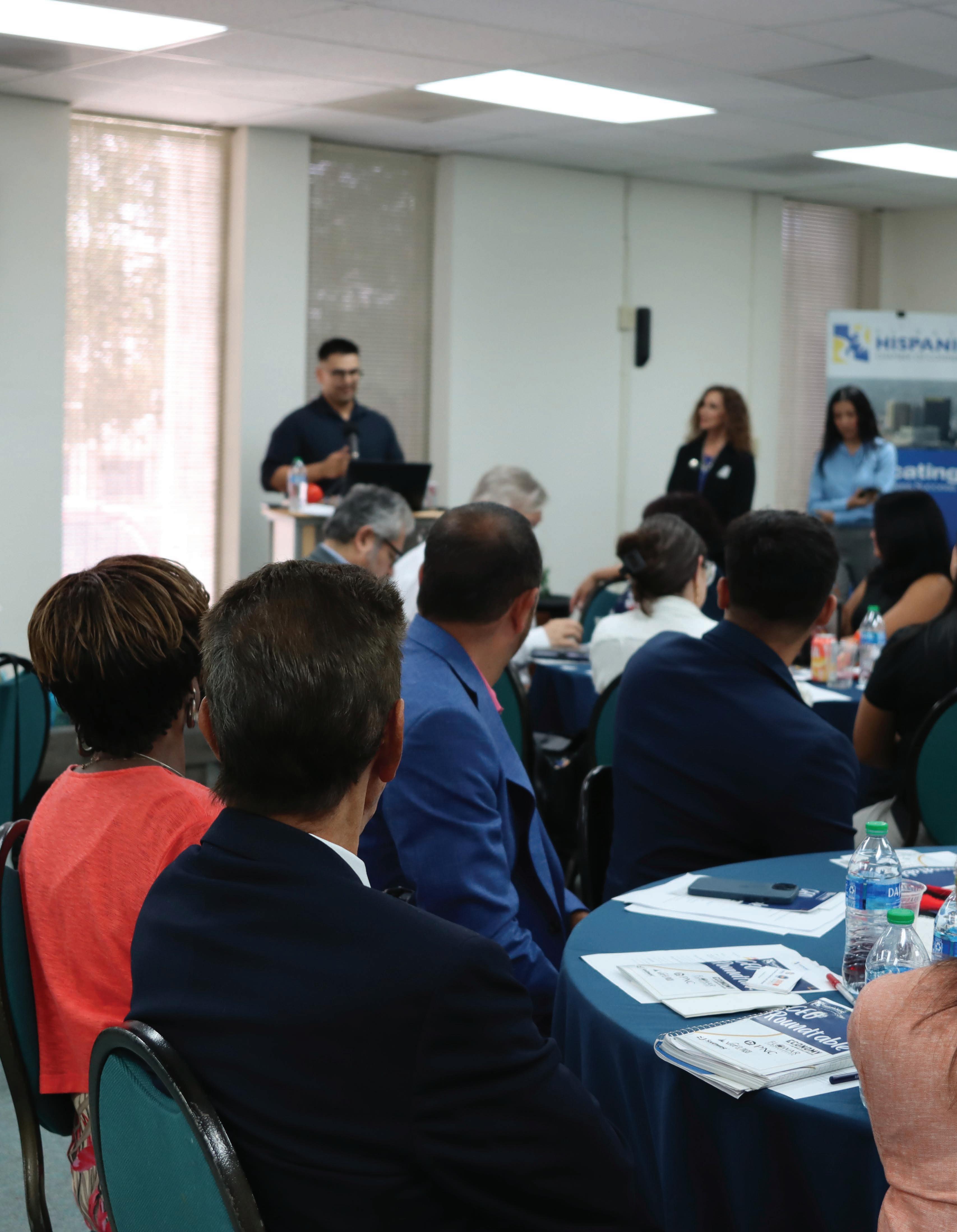 The CEO of Flowar Construction, Mrs. Patricia F. Warnock, Ben Arriola of Southwest University, Paul Dipp of Economy Cash and Carry, and Hector Enriquez of PNC Bank talked about their work experiences with local businessmen, to contribute, and give ideas and strategies for their businesses to grow.