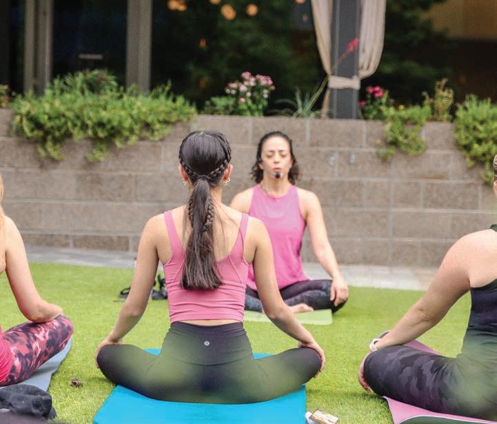 Rossana Patton, with over 20 years of yoga experience, guided participants through a revitalizing and balanced session, creating a welcoming and motivating atmosphere for all experience levels. At the end of the class, attendees enjoyed refreshing mimosas, courtesy of Sushiitto, which complemented the relaxation experience.