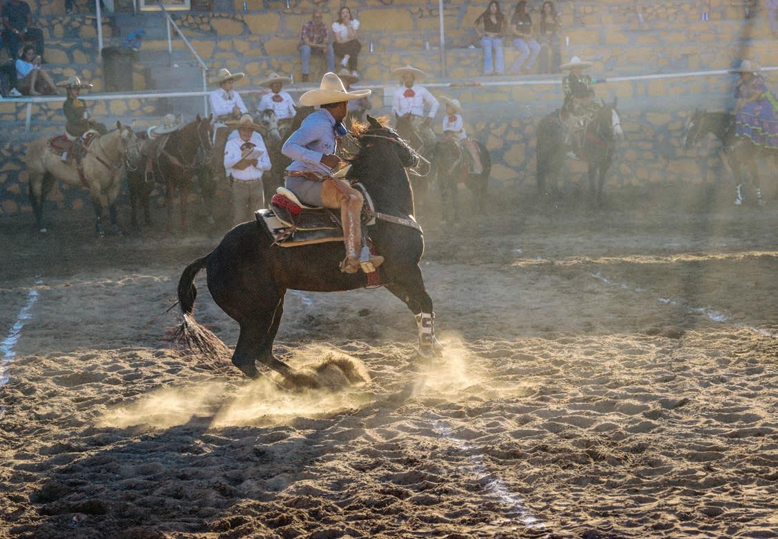 Miguel Angel currently competes with great success in “Charro Completo” events, which include horse reining, piales (roping), team roping, bull riding, foot roping, and the death ride or “Paso de la Muerte”.