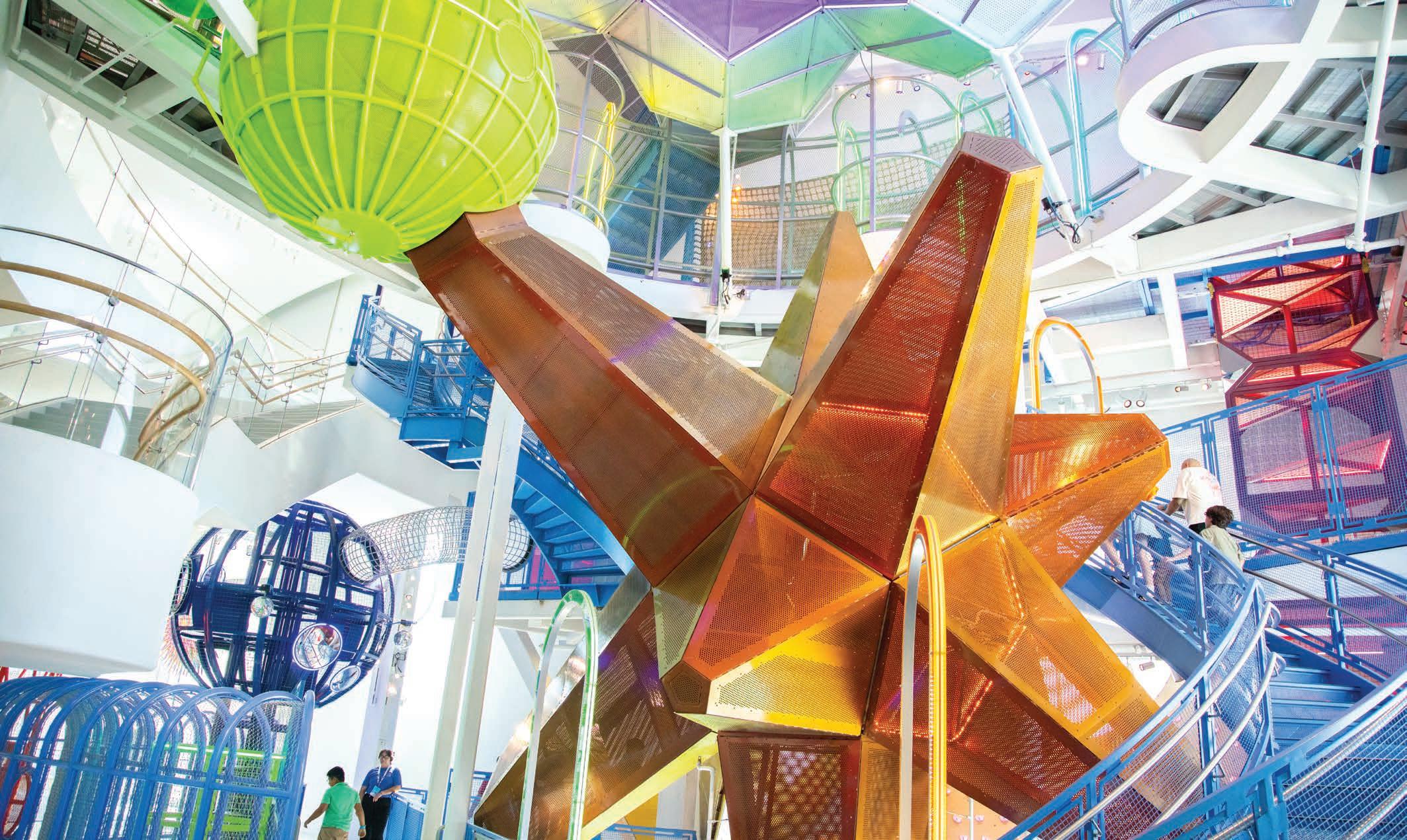 Otro espacio muy visitado por sus visitantes es justamente el centro del edificio de 4 pisos, “Anything Possible Climber”. Se trata de un espacio en forma de estrella donde los niños pueden escalar, recorrer el trayecto con un enfoque pedagógico.