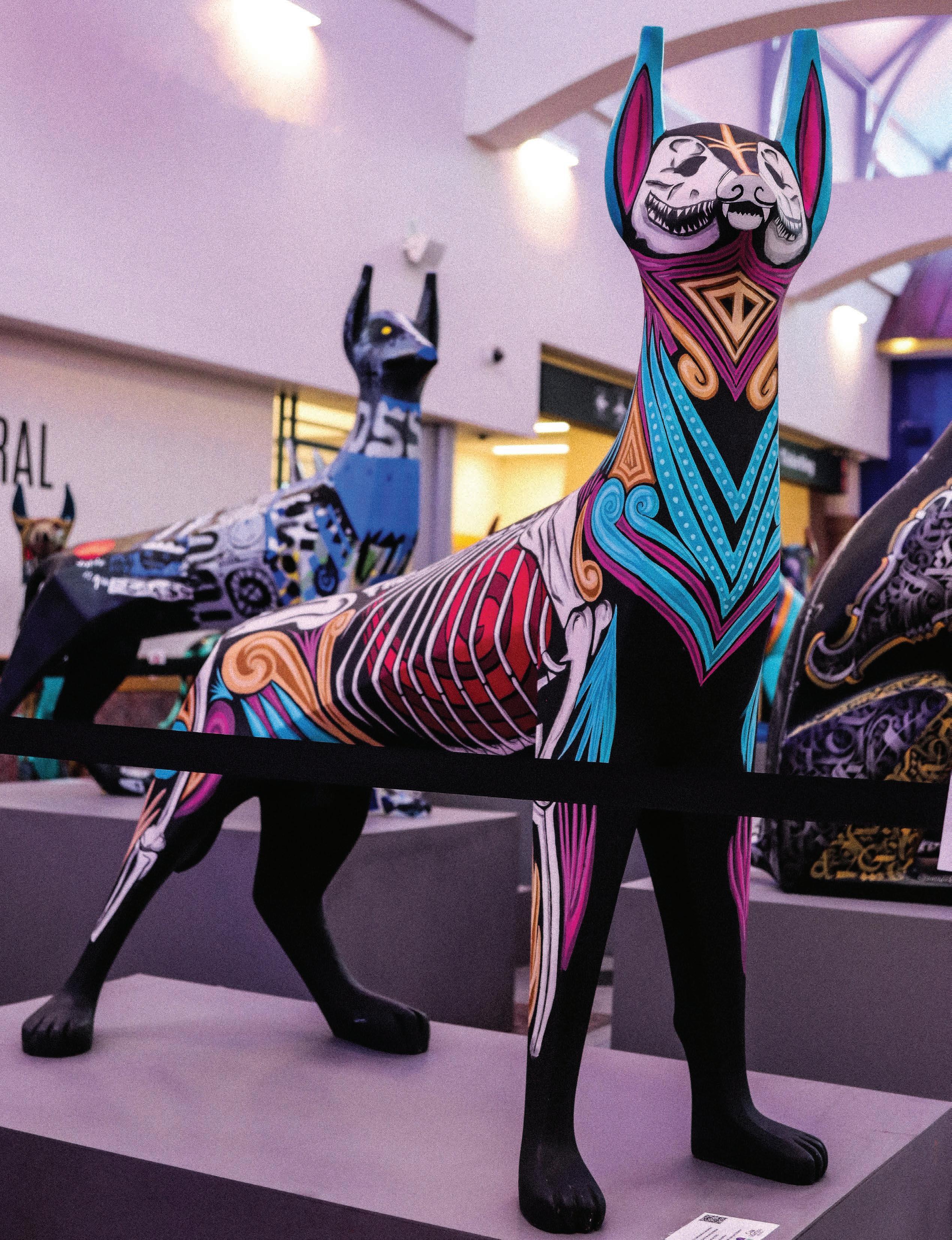 Estas figuras de perros prehispánicos, pertenecen al colectivo Kal Pixki-Art, originario de Guadalajara, y 15 de las obras exhibidas fueron intervenidas por diversos artistas juarenses.