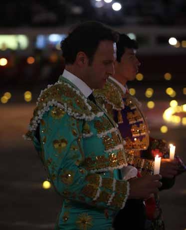 Mientras tanto, en la corrida de las luces, el español Antonio Ferrera, Diego Silveti e Isaac Fonseca encabezaron la procesión, venerando a la Virgen de Guadalupe en un escenario que estaba en penumbra, pero que brillaba con la luz de las velas encendidas y los destellos de quienes vestían de oro y plata.