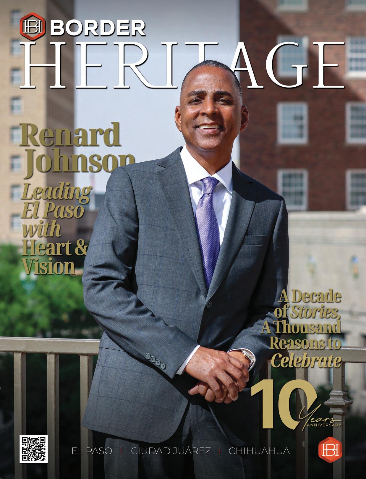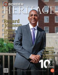 It is an honor for Border Heritage Magazine that, especially in this edition celebrating the tenth anniversary of our publication, a man like the Mayor of El Paso, Renard Johnson, is featured in a special section and, most notably, on our cover. This represents a well-deserved recognition of a charismatic, humble, and compassionate leader who continues to inspire us to work for the well-being of our community.