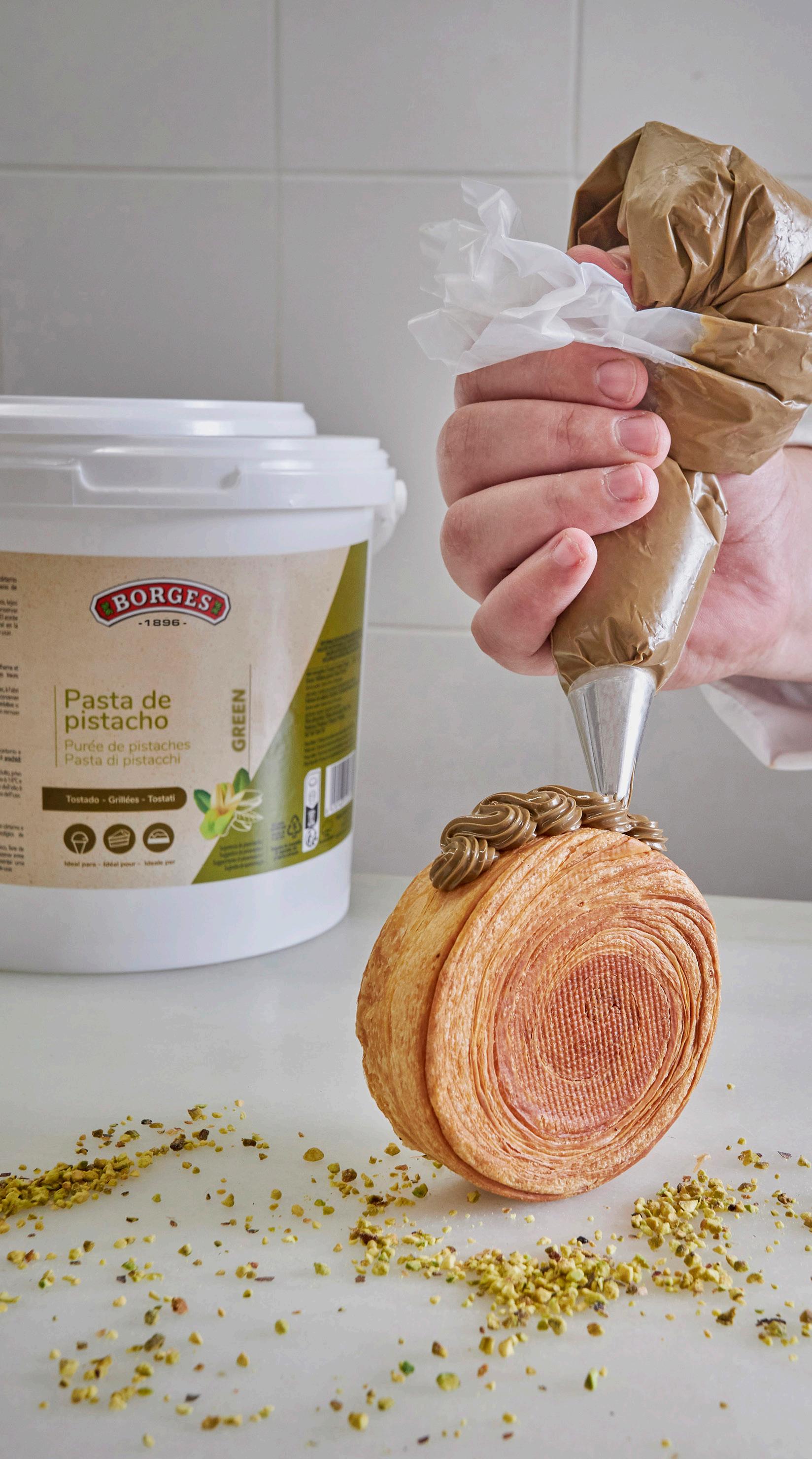 Sugestão da Borges: Escolha entre as diferentes variedades de pasta de pistácio: 100% pistácio, 100% pistácio intensa ou GREEN.