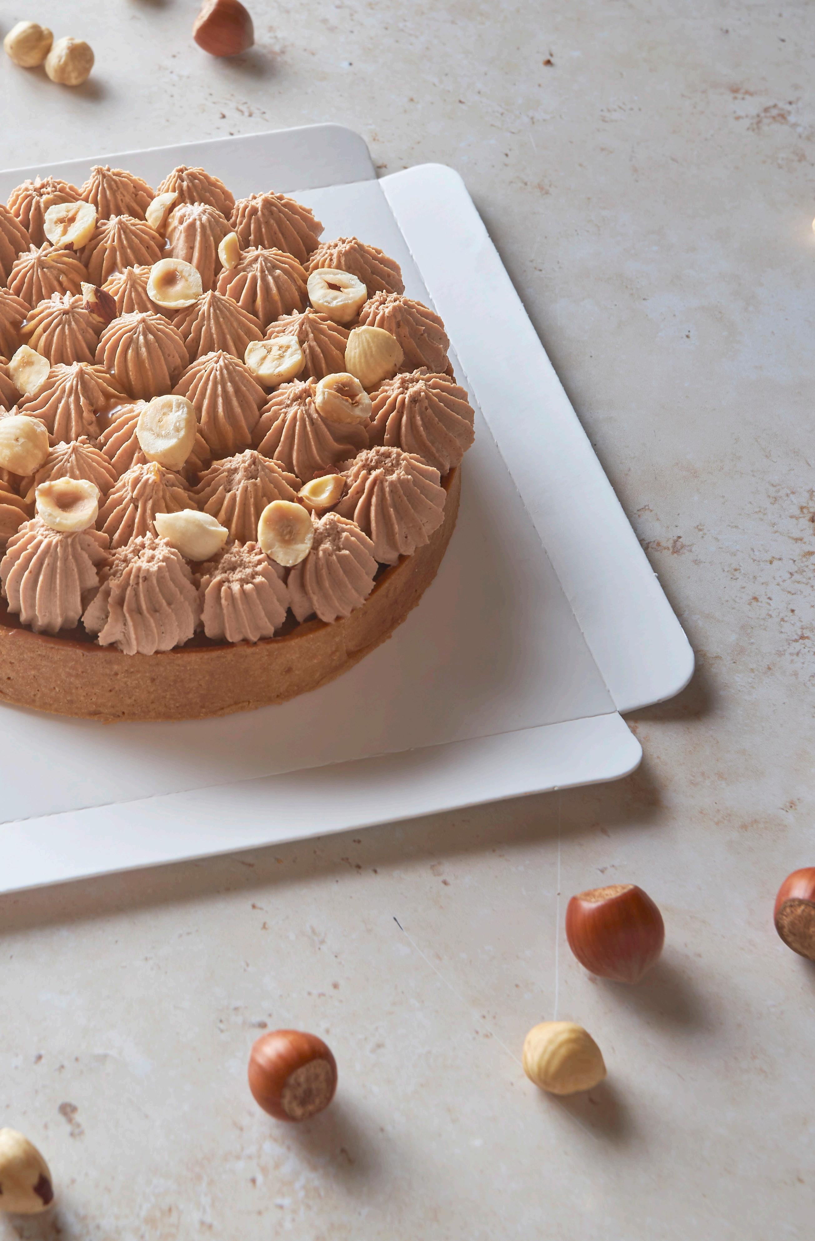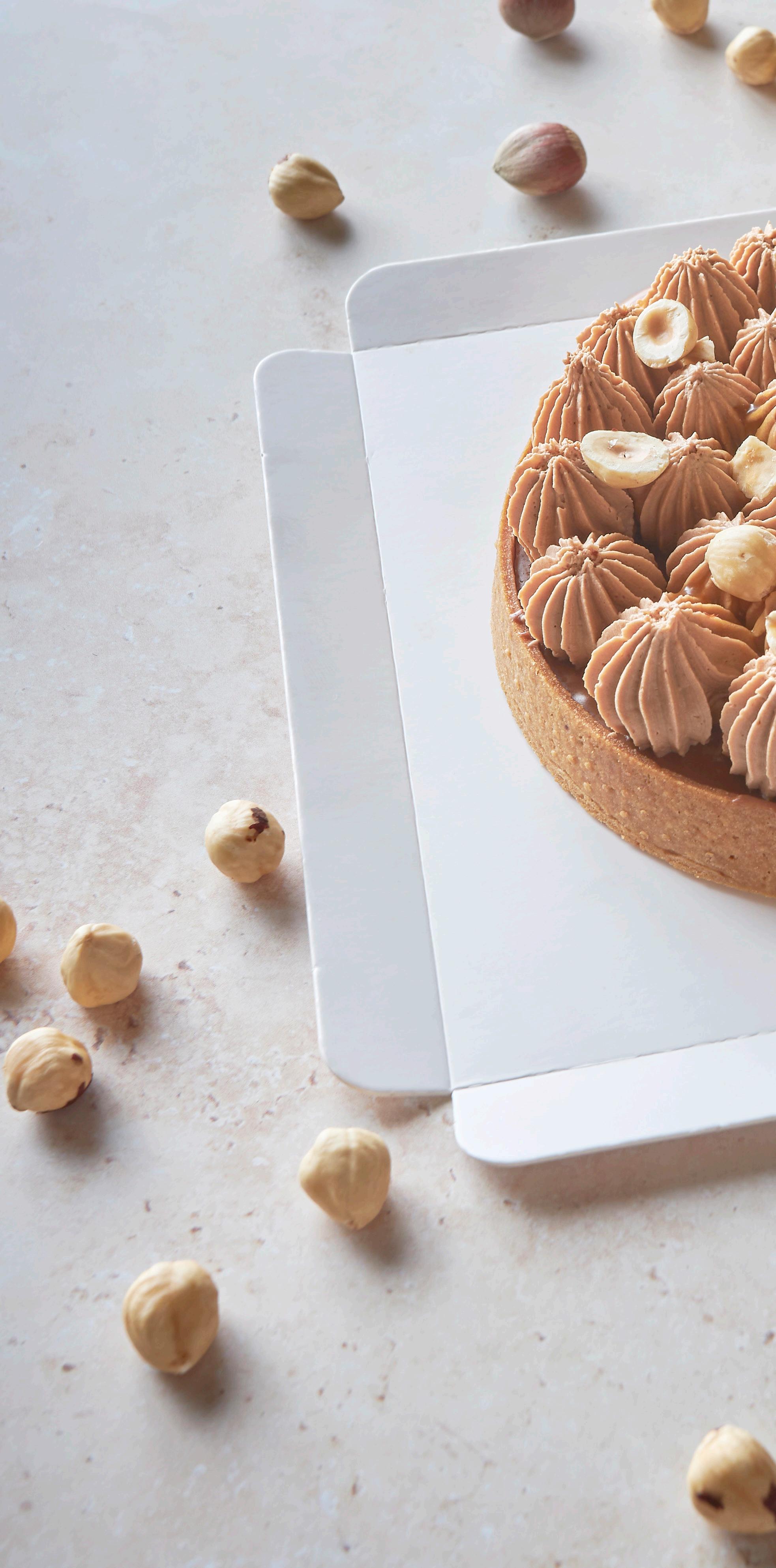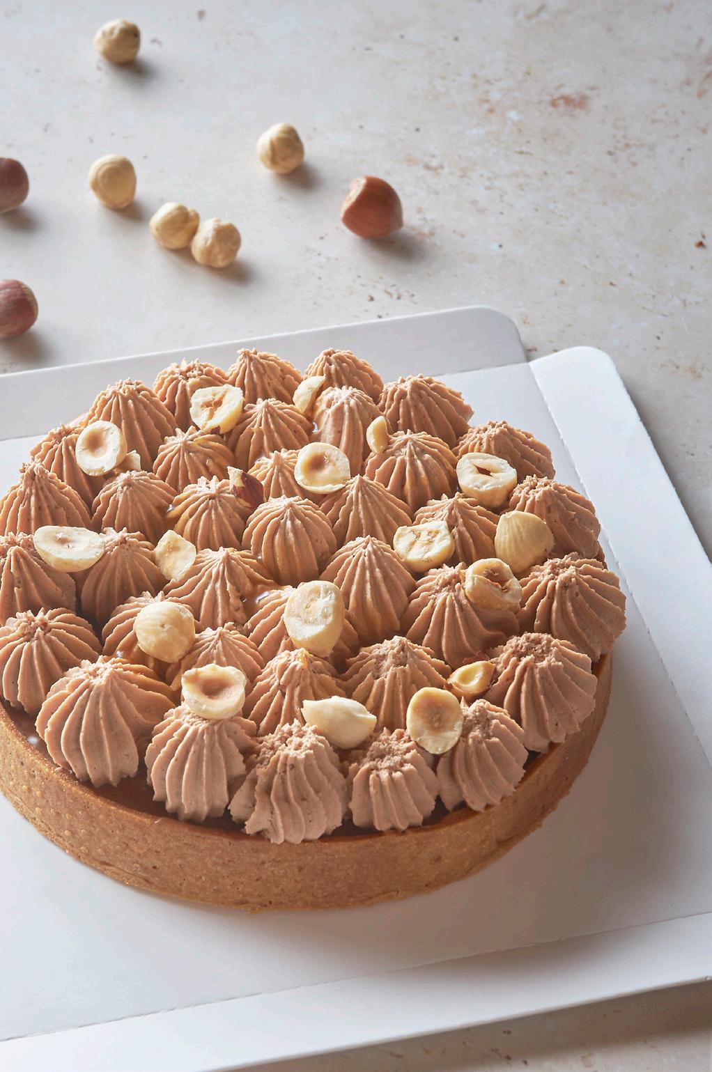 Encher a tartelete com caramelo salgado e congelar. Rechear o resto com a gianduja de avelã e deixar arrefecer. Bater o cremoso com um batedor e decorar a tartelete com o cremoso, caramelo salgado e avelãs Borges partidas.