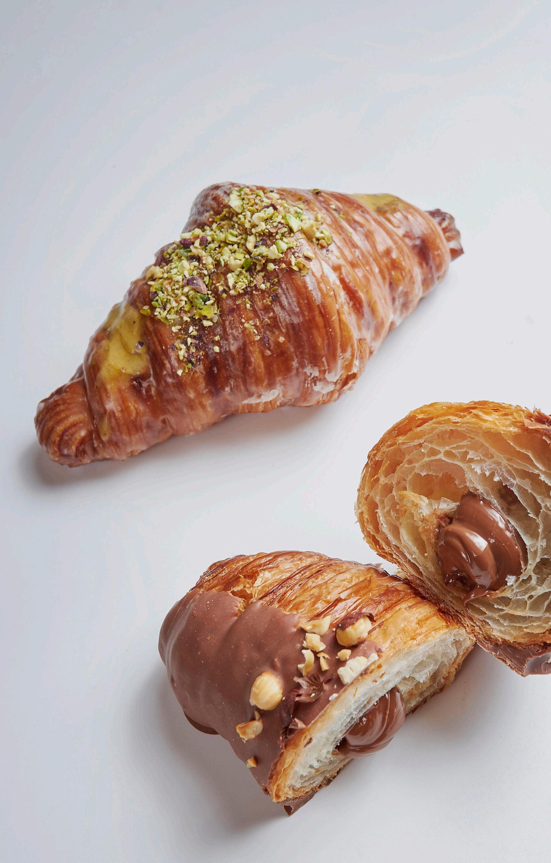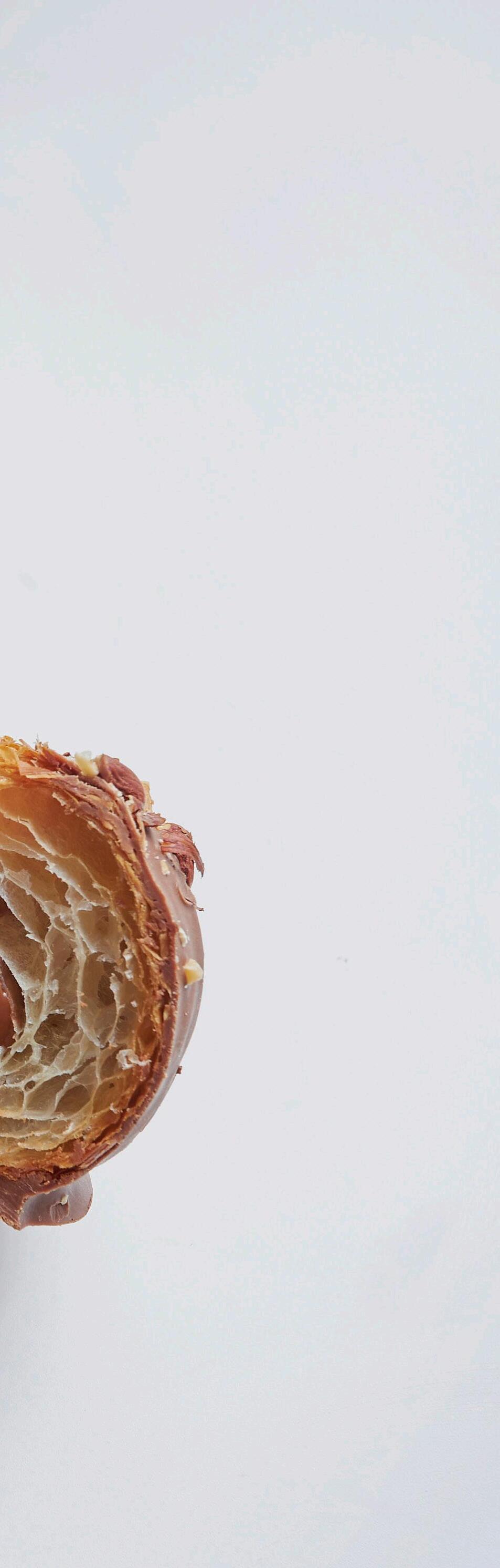 Inserir a manteiga esticada a 30x40 e dar uma volta dupla e uma volta simples. Deixar repousar durante duas horas a -18 ºC. Esticar a massa quando estiver a -3 ºC. Esticar a massa com 48 cm de largura e 3 mm de espessura. Cortar tiras de 24 cm de comprimento por 3,5 cm de largura. Enrolar sobre si mesmo e colocar em formas, deixar fermentar durante 2 horas a 27 ºC. Cozer a 175 ºC durante 18 minutos dependendo do forno.
