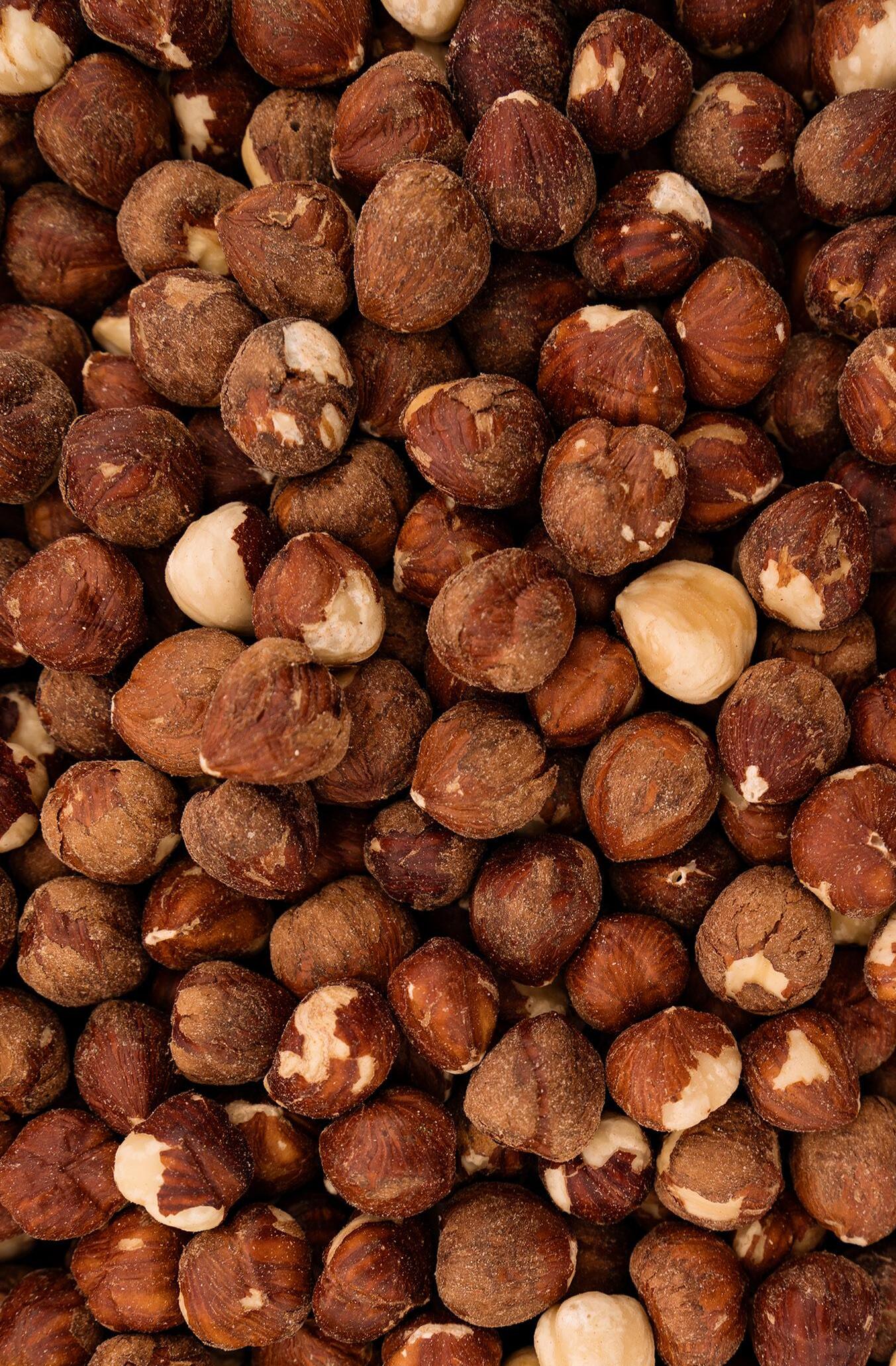 Com pedaços de pele (amêndoa natural).