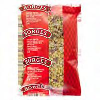 23 FRUTOS SECOS GAMA BORGES 1 KG 10 10 9 45/36*/27** 9 M***/12 M FORMATO PESO UNIDADES POR CAIXA CAIXAS POR FIADA CAIXAS POR PALETE VALIDADE DO PRODUTO Pistácio cru em grãO 1 909479 8410148510897 1 kg Avela crua com pele 1 909478 *** 8410148510873 1 kg 1 kg Amêndoa crua com pele 1 909477 8410148510910 907237 ** Mistura Barbacoa 1 kg MISTURA NATURAL 907252 8410148505985 1 kg Uvas passas sultanas 907243 8410148121406 1 kg Uvas passas sem grainha 907246 8410148120119 1 kg Cereja com caroço 907245 8410148120133 1 kg Cereja sem caroço 907242 8410148121420 1 kg * / ** ESTES PRODUTOS não têm paletização standart. **** CONSULTAR A VALIDADE DO PRODUTO. / 1 Disponibilidade sob consulta. DOY PACK