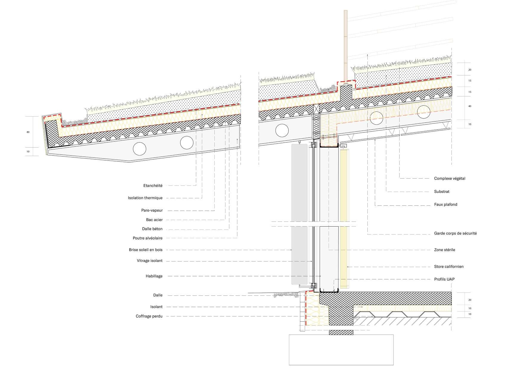 Poutre alvéolaire Mur-rideau Mur en maçonnerie bois R+1 RDC