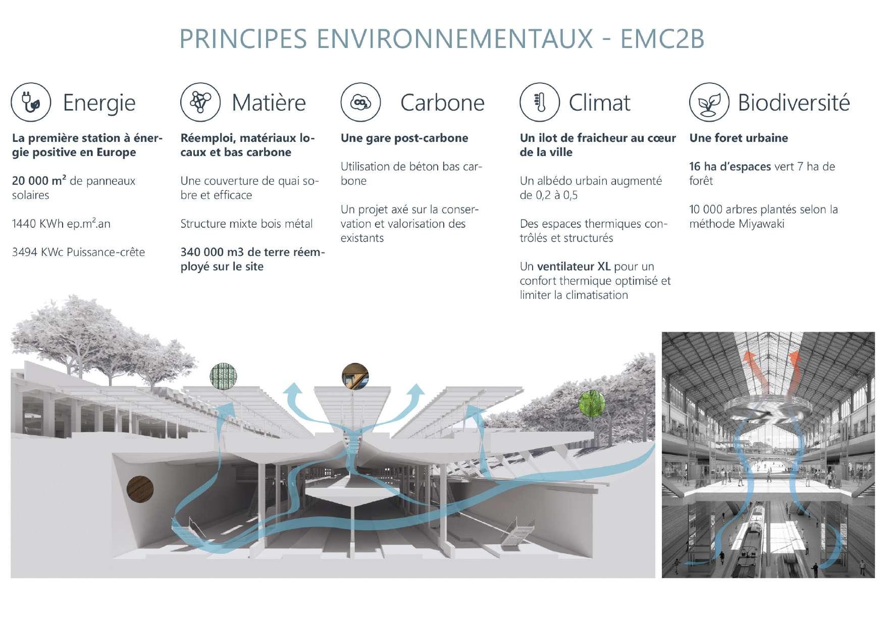 - La création d’une gare paysage intégrée à une forêt urbaine, un hub des mobilités ouvert sur la ville, la restauration.