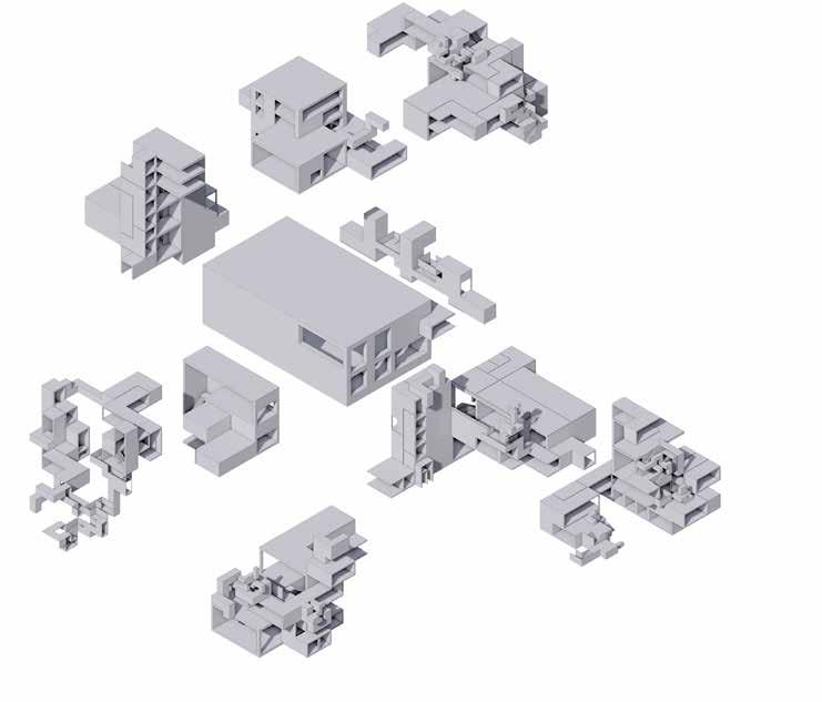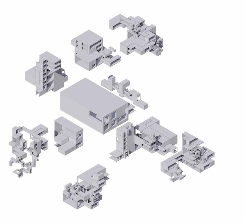 The prototype that I have selected for the design of the Municipal Services Building is inspired by the history and evolution of squatter hut. The list of diagrams shows the evolution of Sam Ka Tsuen; before the quarry was abandoned in 1960s, the village was mainly functioned as labour housing for the miners as it located close to the quarry. The residents tended to extend their own premises when they did not have sufficient place to live. However, after the quarry was banned by the government, the village transformed from a residential area into the well-known seafood market, the commercial activities are mainly happened on the ground floor and the entrance of the village.
