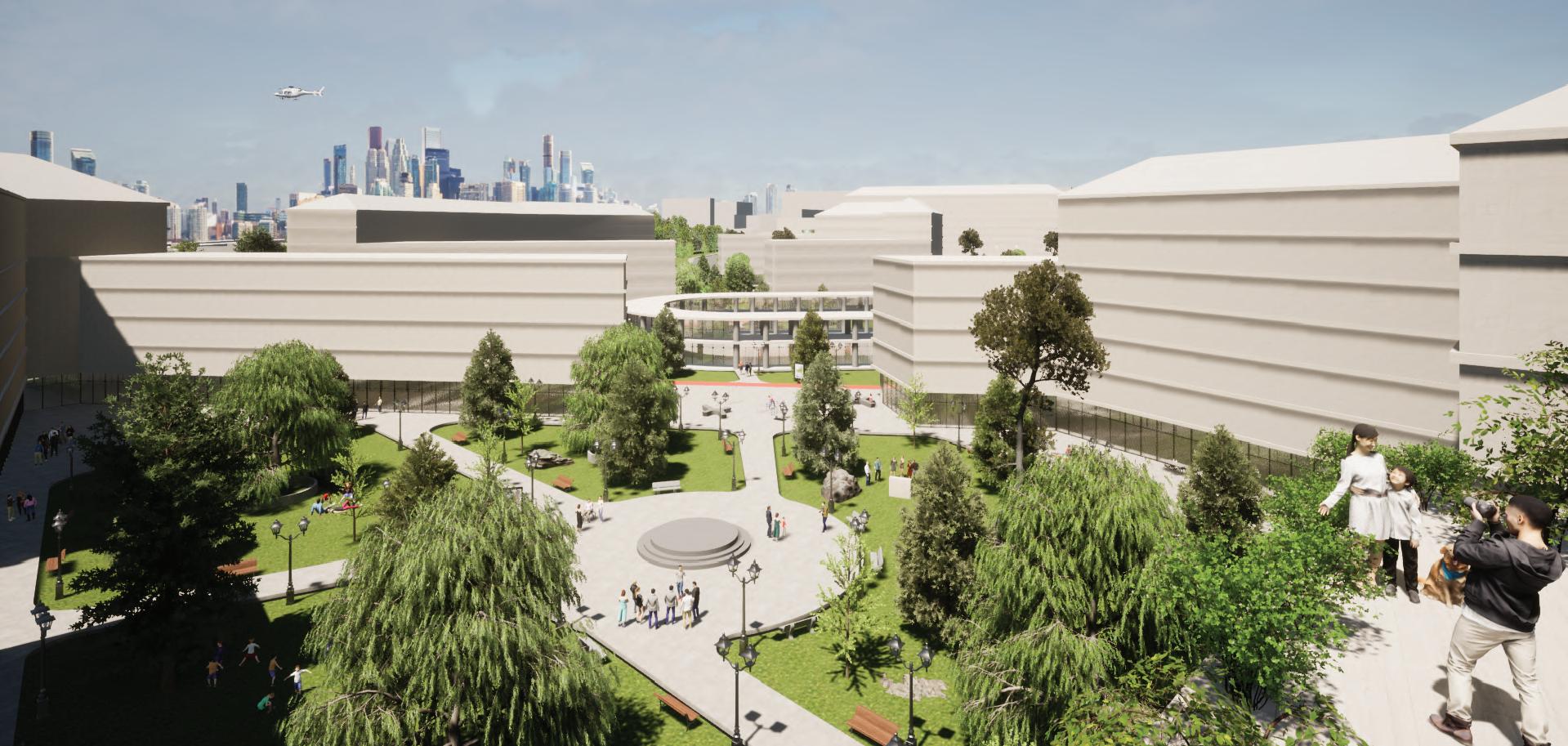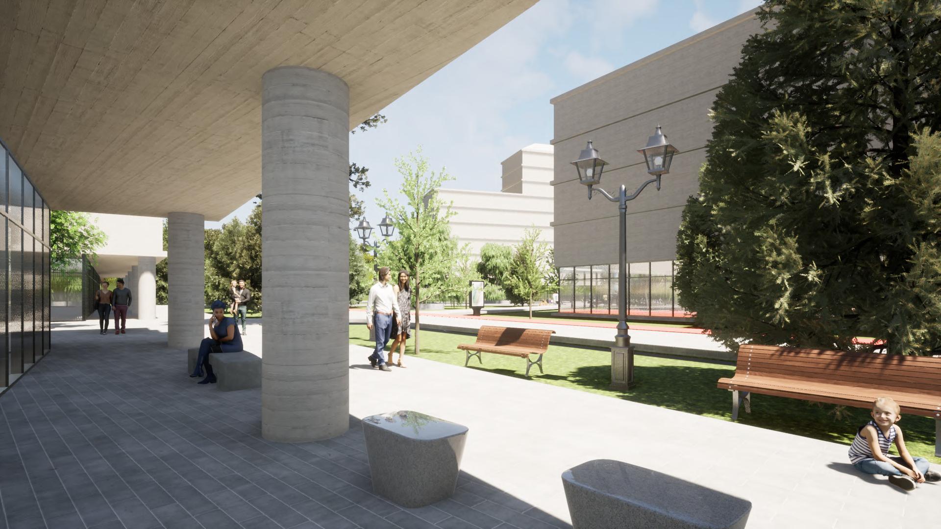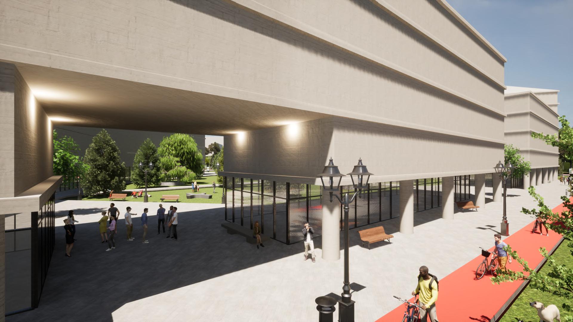 Se dividio el proyecto en tres etapas, la zona publica, semi-publica y privada. Esta distincion es importante para la experiencia del usuario para poder tener un comfort adecuado dependiendo de el uso de los espacios y sus requerimientos. El espacio publico es ubicado en el perimetro para permitir que Madrid tenga parque longitudinales y se conecten por las vias primarais y las plazas semi privadas, marcadas por los bloques privados edificados, seran de uso para las viviendas y trabajadores de las oficinas para distinguir donde pueden entrar terceras personas y donde habitan los propietarios por temas de seguridad y comodidad.