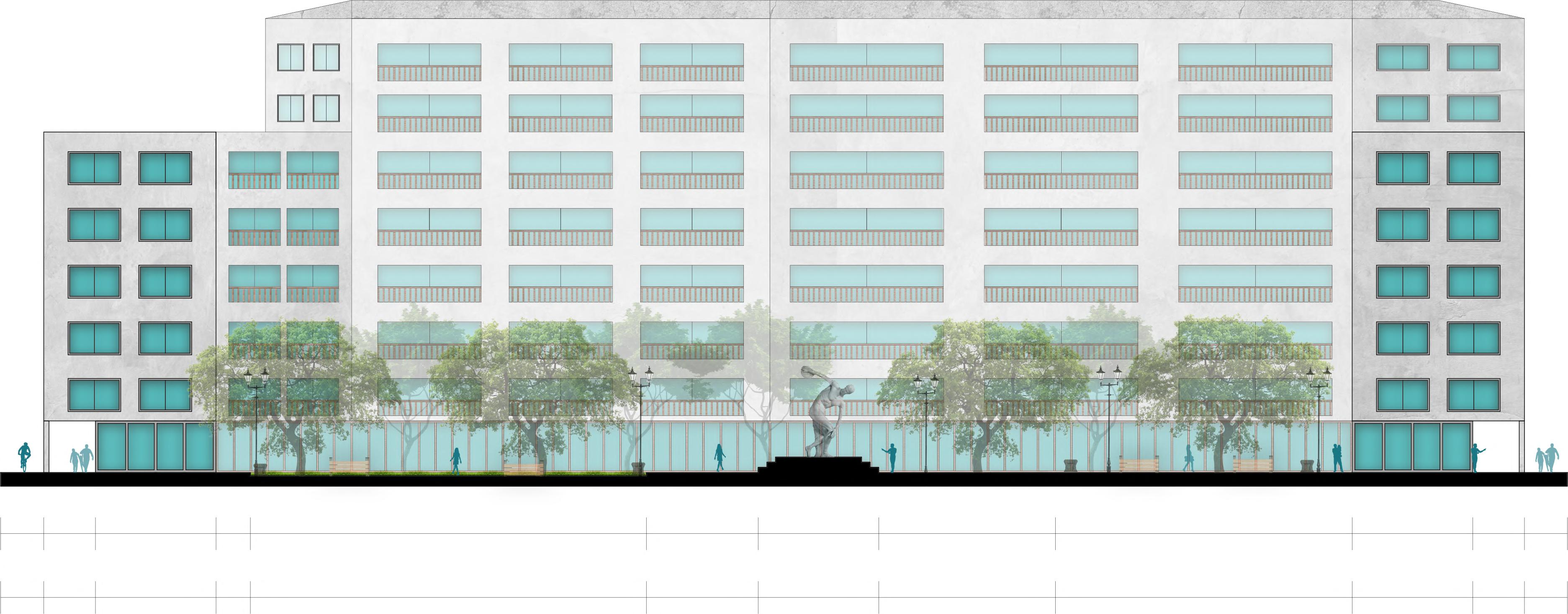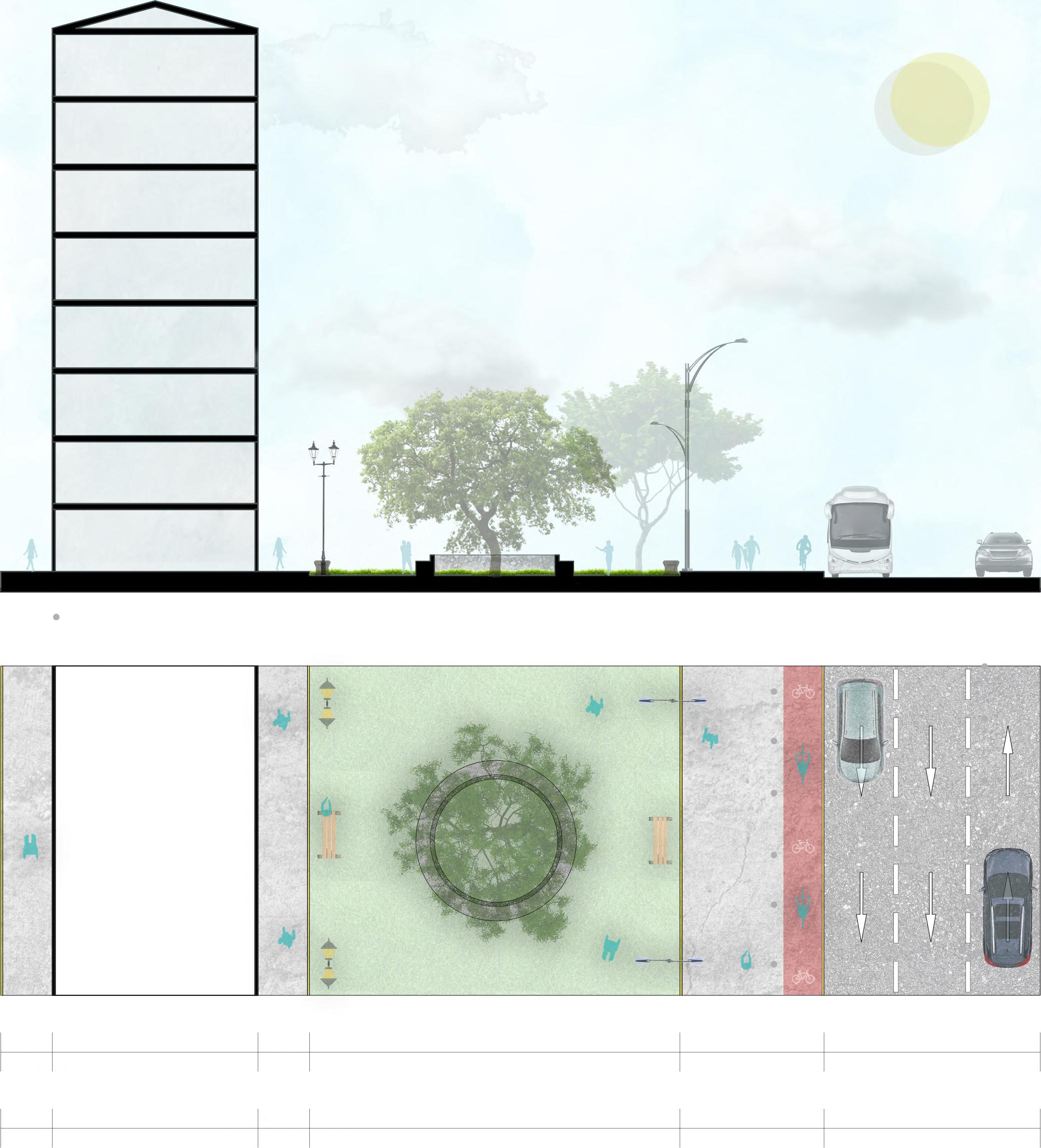 El planteamiento del proyecto debera unificar y seguir las tramas de los parques aledaÒos y debera proponer dentro de sus volumetrias, espacios publicos de transicion y sedentario con el fin de resguardar la comunicacion de los rentes y promover la unidad vecinal.