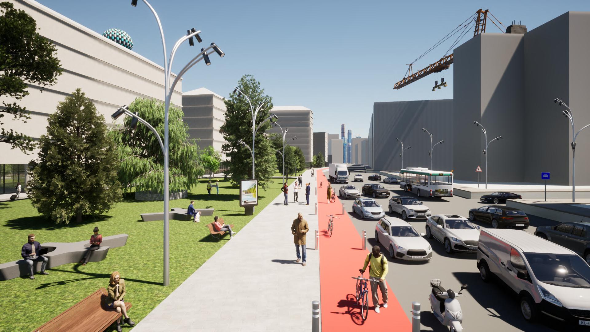La traba urbana esta dividida en 3 tipos de sendas. Primero encontramos la perimetral que es un ensanchamiento del perimetro ya existente con el fin de incorporar ciclovias y comunicarse como extension hacia los dos parques topograficos. Luego, estan las vias principales que jerarquizan el recorrido de la poblacion en plazas longitudinales hacia ambos perfiles del terreno y las secundarias comunican entre si las plazas y los dos tipos mencionados.