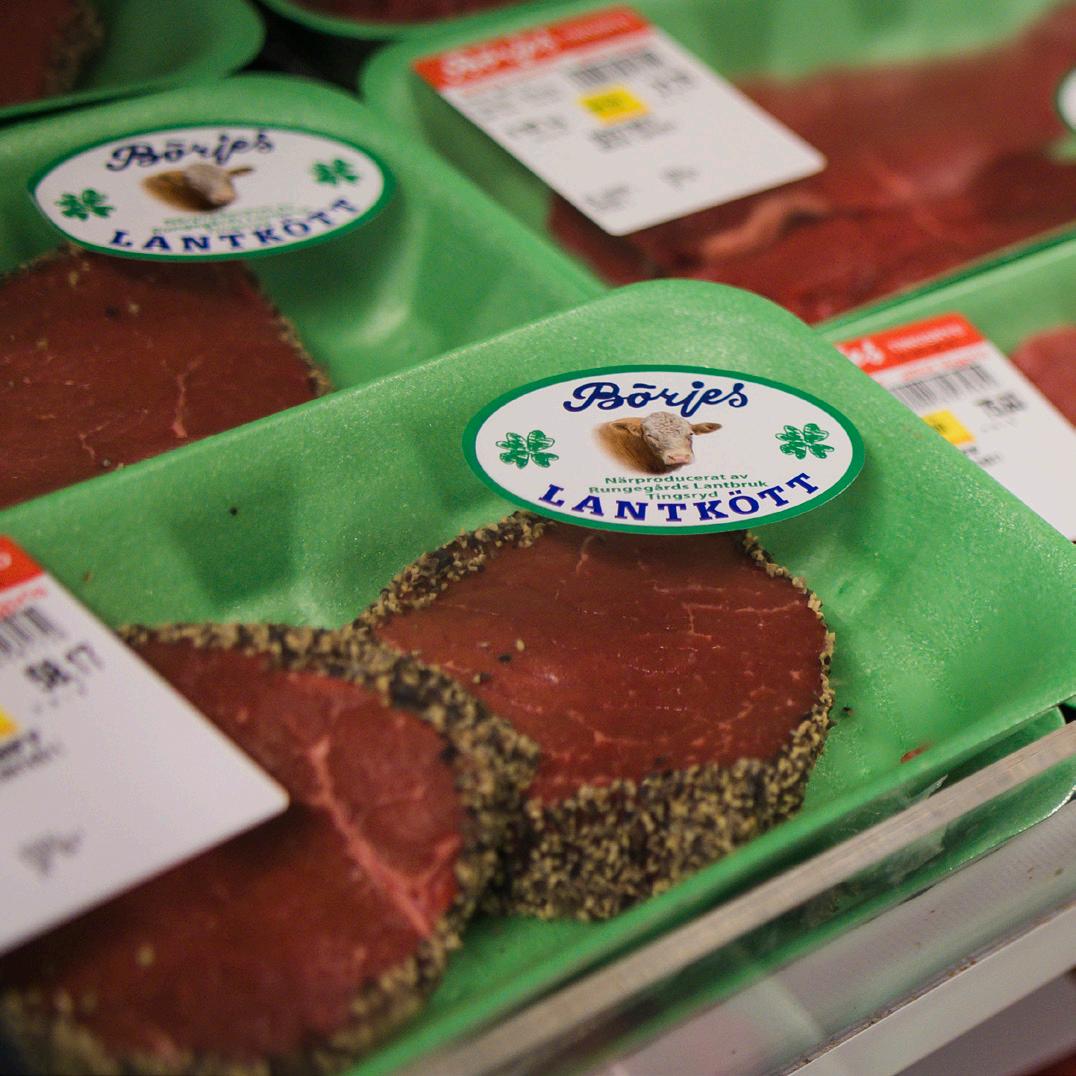 I vårt sortiment hittar du bland annat "Börjes Lantkött", som kommer från vår egen uppfödning av nötkreatur.