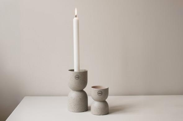 Post ljusstake Ø 8 cm, H 16 cm. Post värmeljushållare Ø 7 cm, H 10 cm. DBKD