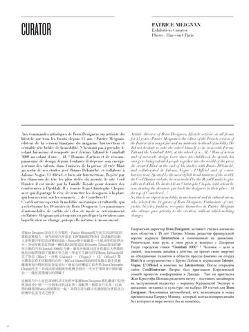 Aux commandes artistiques de Born Designers, un activiste du lifestyle sur tous les fronts depuis 15 ans : Patrice Meignan, éditeur de la version française du magazine Intersection et véritable tête brûlée de la mobilité. N’hésitant pas à prendre le volant lui-même, il remporte avec Jérémy Taltaud le Gumball 3000 au volant d’une… 4L ! Homme d’action et de réseaux, passionné de design depuis l’enfance il dépense son énergie à réunir des talents, dans l’univers de la presse (il crée Blast au sortir de ses études avec Bruno Débauché, et collabore à les chasseurs de tête les plus stylés du monde, le site Cool Hunter, il est invité par la Famille Royale pour donner des conférences à Djeddah. Il y convie Jean-Christophe Chopin, avec qui il partage le rêve de remettre les designers à la place qui leur revient, sur les sommets … de Courchevel ! C’est donc un expert de la mobilité, mécanique et culturelle, qui a sélectionné les 19 invités de Born Designers. Les passionnés d’automobiles, de yachts, de vélos, de mode se reconnaissent en Patrice Meignan qui a toujours su privilégier la création sans laquelle rien ne change, puisqu’elle incarne le mouvement.