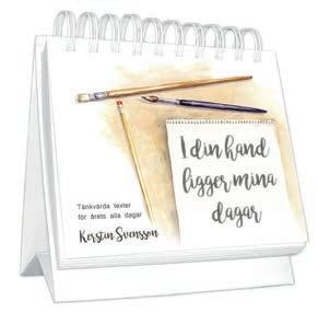 Kerstin Svenssons årliga kalender. Akvarellbilder och oljemålningar försedda med citat, tänkespråk eller bibelord för varje månad. Kalendariet har gott om skrivplats och innehåller namnsdagar, kyrkoåret, uppgifter om solens upp- och nedgång m.m.