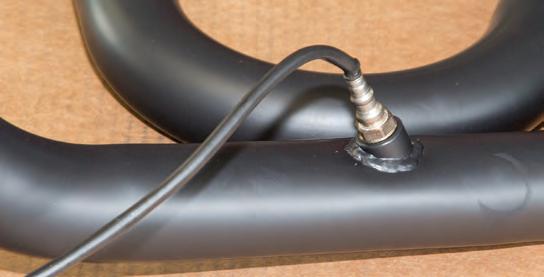 THE OXYGEN SENSORS ARE THREADED INTO THEIR BUNGS AND EXHAUST FLANGE MOUNTS AND SNAP RINGS ARE INSTALLED ON THE TWO HEAD PIPES.