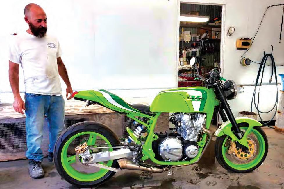 Craig was approached by Santiago Choppers to create this street fighter based on the look of a rare Godier Genoud (look it up – it was one of the most prestigious Kawasaki racing bikes back in the 1970s). “I’ve done two of them,” Craig say, “and I had to have this one. It is a rolling business card for my company.” The bike